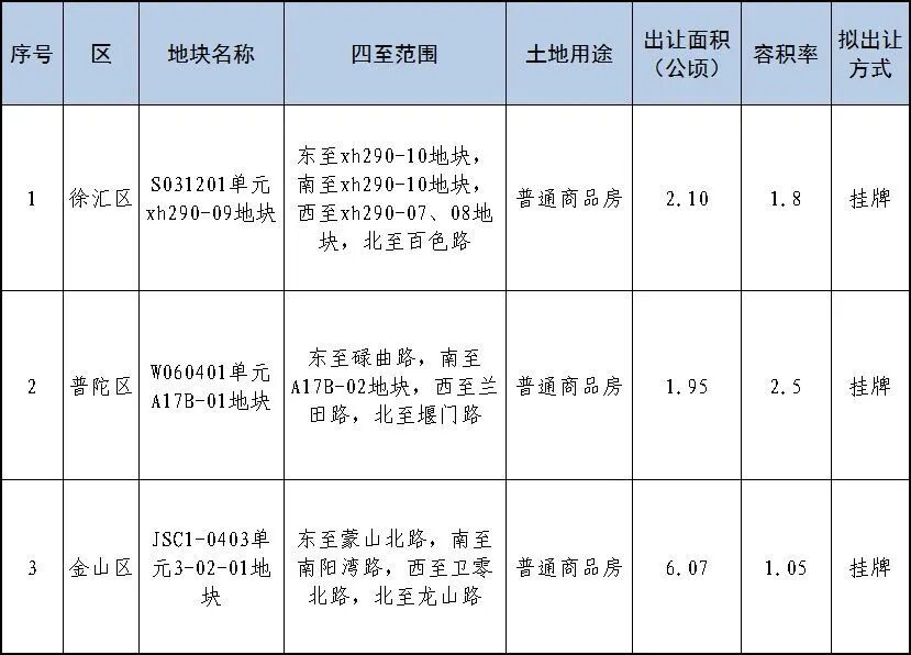 相关地块条件和交易活动具体安排以上海市规划和自然资源局网站、上海土地市场网、中国土地市场网等发布的出让公告为准。