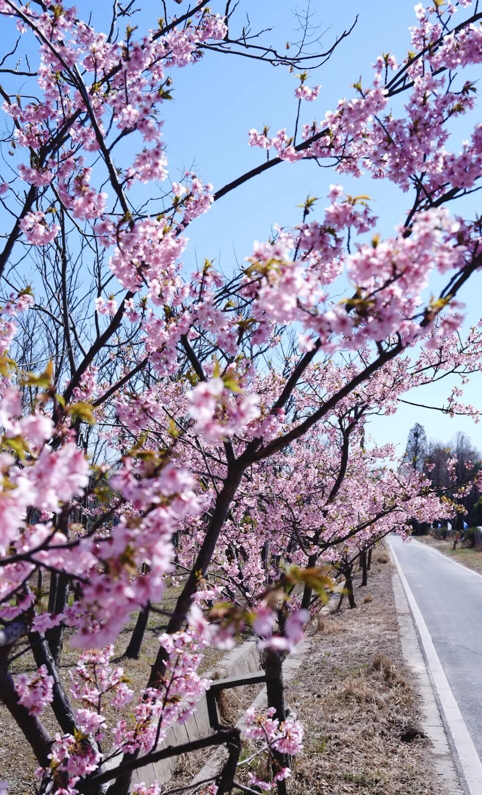 道路旁的樱花次第绽放