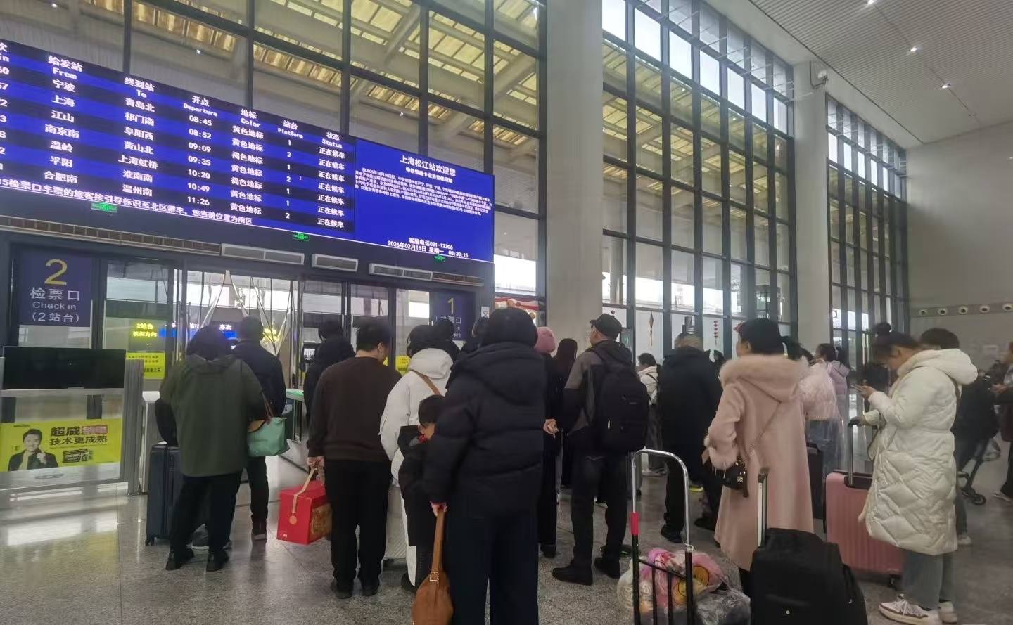 昨天(3月13日),为期40天的春运落下帷幕。作为长三角重要交通节点,松江枢纽交出了一份亮眼的“春运答卷”:总体服务旅客378.8万人次,较去年增长30.8%。其中,铁路累计到发旅客224.5万人次,较2025年增长28.9%,9天春节假期到发总量同比增长52.7%、假期日均到发同比增长 35.3%。