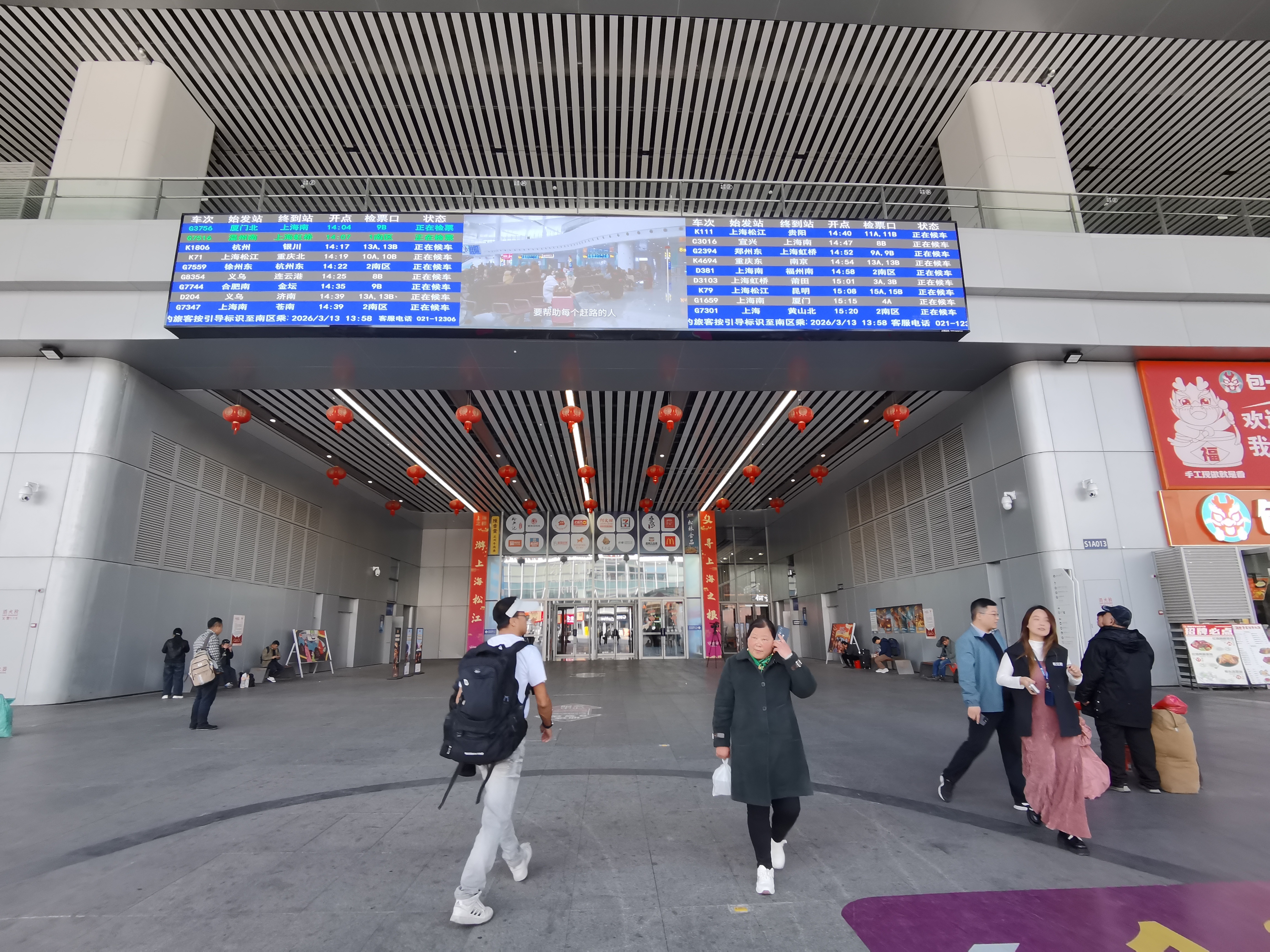 同时,上海松江站东1门新增信息大屏,由三块屏幕组成的巨型信息屏,让旅客一抬头就能看见实时车次。“以前要走到候车厅门口才能看大屏,现在一出地铁就能查看最新的车次信息,更方便了。”拖着行李箱的旅客张先生连连称赞。此外,随处可见的“沪小松”二维码海报,旅客只需手机扫一扫,即可在站内进行定位导航。
