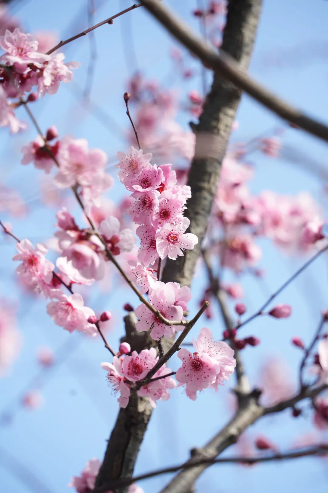 盆景园内,美人梅如娇羞的少女,在微风中轻摇身姿。层层叠叠的花瓣,宛如少女轻盈飘逸的裙裾,在风中轻轻摇曳。