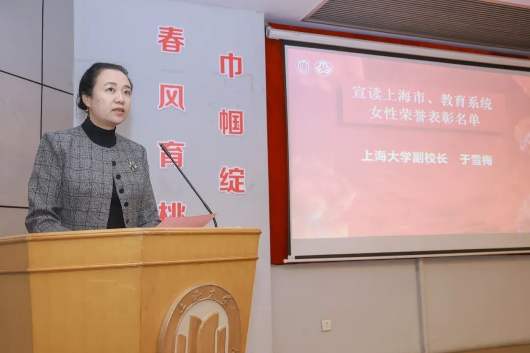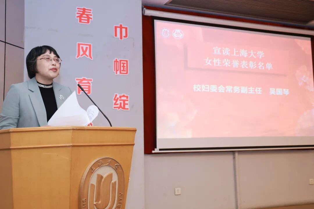 校妇委会常务副主任吴国琴宣读荣获上海大学女性荣誉名单。