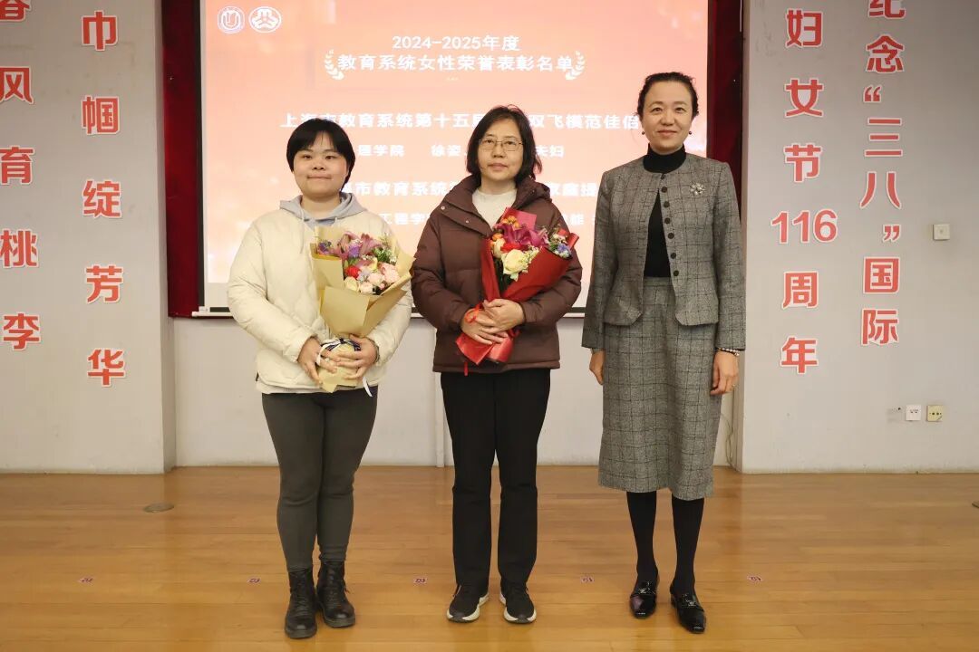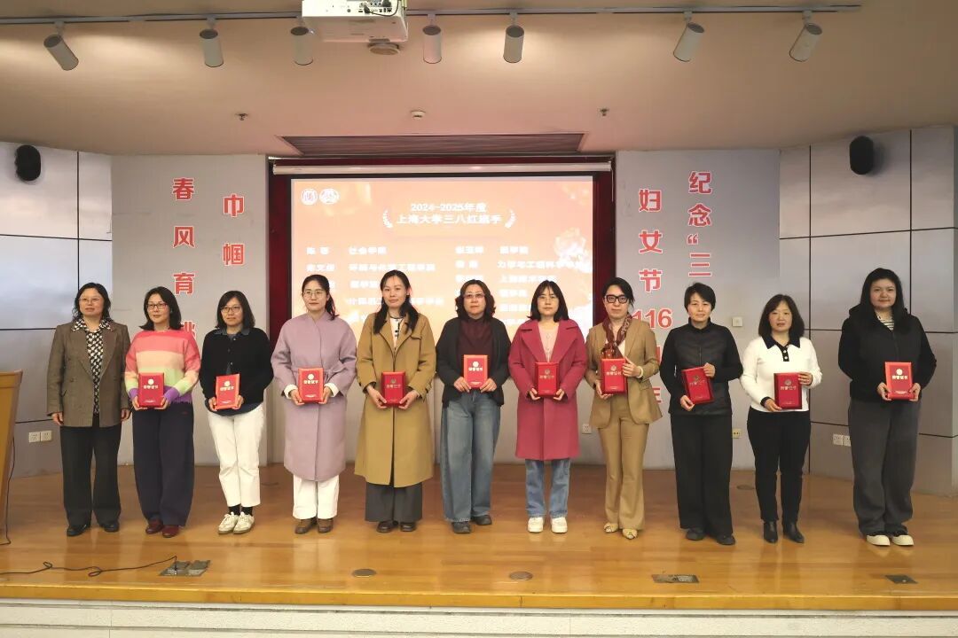 上海市三八红旗手标兵、微电子学院周婷,三八红旗手、通信与信息工程学院曾丹,上海大学三八红旗集体代表、国际部王丽娜作为获奖代表进行了交流发言。