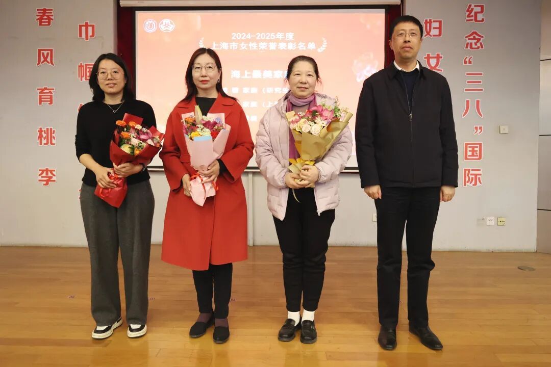 吴坚勇为上海市三八红旗手标兵、三八红旗手以及海上最美家庭获得者颁赠鲜花祝贺。