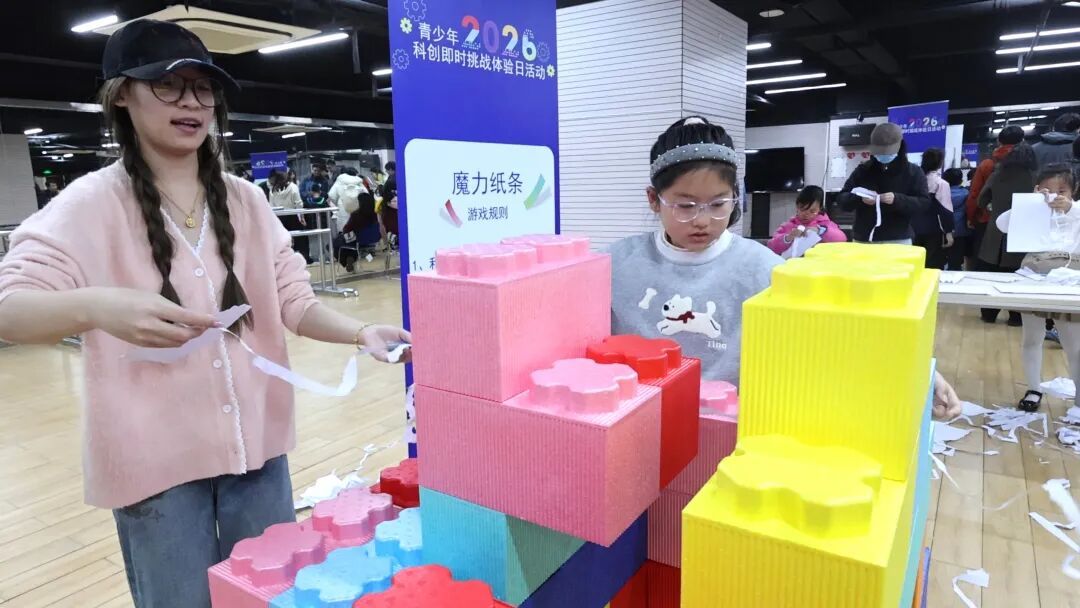 无人机缓缓起飞,顺着操控方向看到一张张专注的稚气脸庞;积木错了重新搭,非遗手作更要有耐心……3月14日,2026青少年科创即时挑战体验日活动在普陀区长征社区文化活动中心举行,每个项目前都渐渐排起长龙,来自全市11个区的近300名中小学生参与活动,科技与艺术交织,创意与实践碰撞,现场处处洋溢着青少年对科学的探索热情。 把A4纸尽可能撕出长条,将其围绕在泡沫城堡上,圈数越多越好。在“魔力纸条”项目前,记者见到不少孩子正全神贯注地撕着纸条,与周围的热闹形成鲜明对比。而在不远处,任哲正在和爸爸一起排队体验非遗漆扇,早早来到现场的他只剩下两个项目还没体验。“今天第一次体验同时做这么多项目,而且全部参与能够领取小奖品,非常开心。”任哲就读于上海市真光小学二年级,他最喜欢的项目是“能源归位”,通过操控倾斜的平台,将三个不同颜色球推进对应颜色的洞里。偏爱操控类体验的他也热衷于机器人编程操纵,除了在现场项目中过了一把瘾外,课外已经积累了不少经验,编程设计的小车感应到墙体就能自动转弯,“我很喜欢机器人,会继续学下去。” 活动现场分别设立了体验展示区、创意活动区、公共咨询区,三个板块包含积木搭建、非遗手作体验、创意绘画、遥控模型体验、无人机体验等共计10余项子活动,重点聚焦青少年科学思维教育及科学体验领域。即时挑战活动包含科技与艺术元素相结合的体验内容,共设10项挑战,参与者可选择其中几项,累计完成各项体验活动获得相应奖品作为鼓励。 普陀区青少年教育活动中心科技老师何诗雨平时执教的3D打印社团让孩子们的奇思妙想从图纸变成实物,用科技实现创意;头脑OM社团则鼓励孩子们打破思维边界,在团队协作中解锁问题的无限可能。“这些都与今天的活动内容高度契合,无论是积木搭建、无人机体验,还是非遗手作、创意绘画,都让青少年在动手实践中感受科创魅力,在趣味挑战中锤炼创新能力。”何诗雨邀请社团学生们来参加,孩子们也积极响应,“裁判们给孩子们出了一些难题,但这些都是打破思维界限的过程,我希望孩子们能放下顾虑,大胆尝试!” 长征社区文化活动中心作为服务社区青少年的载体,也是社区学校的上课场所,结合寒暑假开设科创公益性课程,如今年寒假围绕科创热点,为青少年带来新鲜的融合体验,如AI与非遗、科学和戏剧,帮助他们在课余探索科创思维的乐趣。 “今天的活动也是家校社协同育人的体验,辖区内学校积极响应,共有八所中小学参与。”长征镇相关负责人介绍,辖区内中小学非常注重科创素养培养。新普陀小学东校每年举办的“酷玩节”用“会玩,更会创”的理念,让孩子们的思维从一张纸的无限可能到一平米的浩瀚宇宙,从跨界艺术的融合到编程世界的探索,搭建了一个敢于梦想、勇于实践、乐于分享的舞台。作为上海市人工智能教育实验校,曹杨实验小学凭借优秀的师资和配套课程,与社区一道营造科创氛围。到了中学阶段,孩子们踊跃参与市级大赛并取得奖项。 “今年五月,长征镇将在辖区内举办科技节,涵盖科普漫画大赛,经过专家评审,我们会推选优秀作品保送长三角赛区。”负责人表示,联动镇域内各学校的科创项目,针对不同年龄阶段的青少年进行阶梯式培养,在学校与社区中更好地普及青少年科学素养的知识。 来源:青年报记者 丁文佳 摄影:郭容 编辑:吴锴