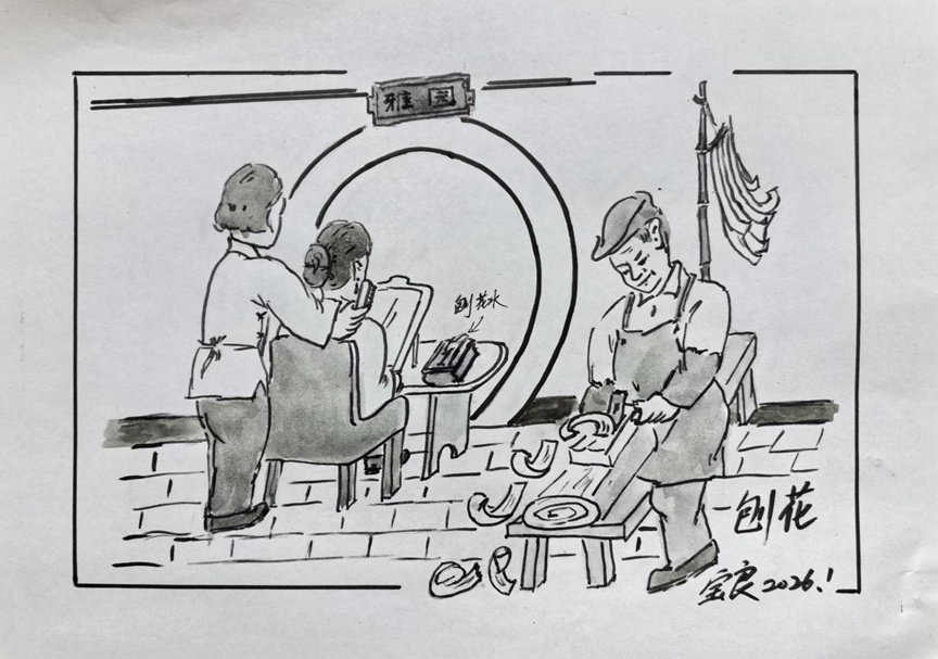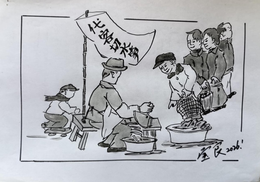 老早生活简单朴素,不等于马马虎虎过日子,不少生活服务应有尽有,前期已画过几张,日后我还会陆续把过去的为民服务的场景画出来,让大家一起来看看当年市井的烟火气。