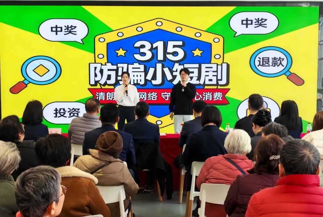 针对老年群体,保险公司精心编排的防骗系列小短剧成为全场焦点。通过四个独立的生活化场景,真实还原了“冒充公检法”“虚假杀猪盘”“钓鱼链接”“征信修复”等诈骗案例,让居民们在捧腹大笑中看清了骗子的伪装,掌握了实用的防骗技巧。此外,默剧《“利”令智昏》、诗朗诵《无声的防线》等节目也从不同角度诠释了法治的价值。