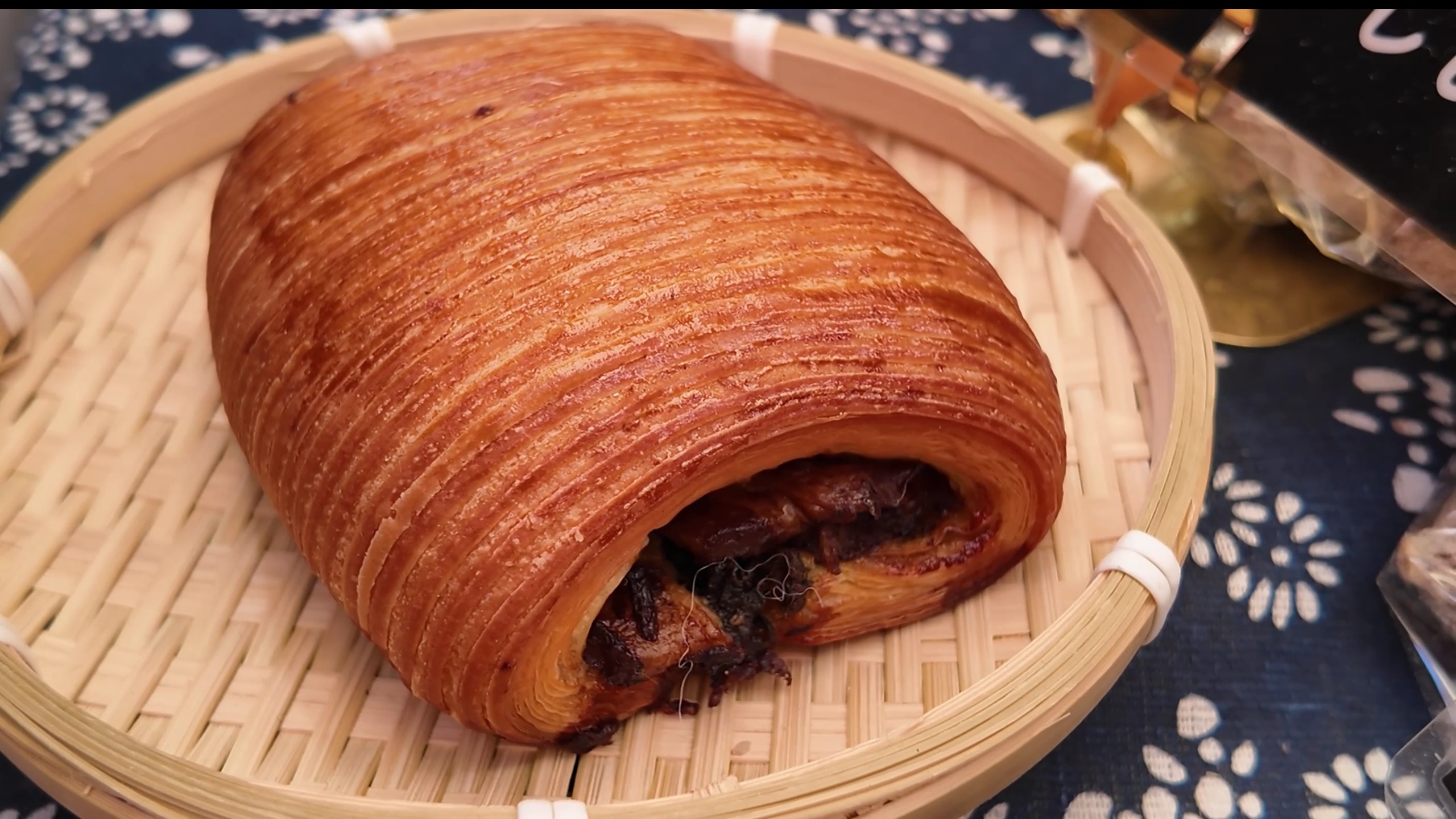 春笋荠菜腊肠恰巴塔、梅干菜盐面包、梅菜扣肉可颂、梅菜肉法棍,每一款都充满江南烟火气;卖了三年的酒酿恰巴塔更是王牌,酒酿揉进面团,搭配绍兴本地扎肉,酒香与肉香融合得恰到好处。不过要拼手速——上海人民的热情实在太足,备货早已被抢空,主理人承诺明天会加量供应,想吃的宝子别跑空!