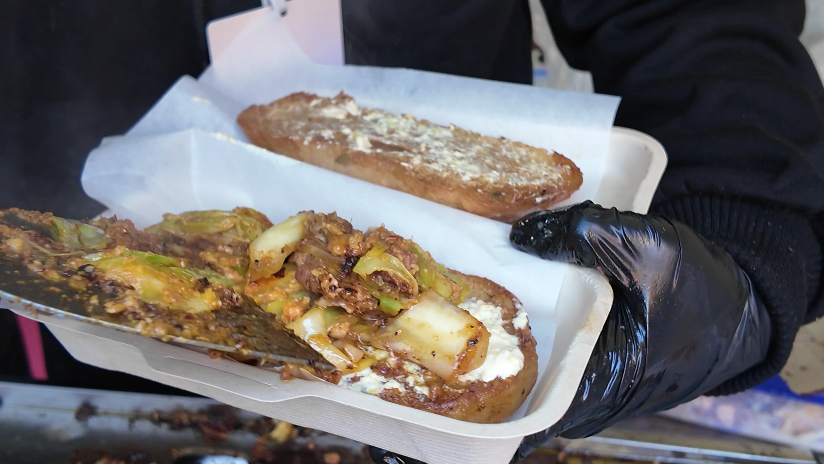 来自贵阳的宝藏品牌,带着独创的贵州酸汤牛肉恰巴塔三明治,用纯粹的口味征服了现场食客。这款面包的灵魂是贵州红酸汤,用本地野生小番茄、花溪辣椒剁碎发酵,再加入姜蒜、木姜子翻炒,风味独特又上头。