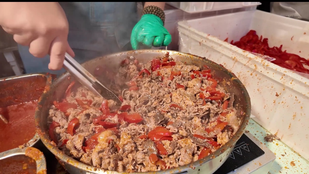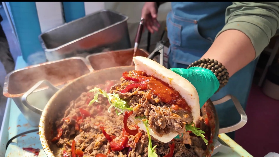 来自贵阳的宝藏品牌,带着独创的贵州酸汤牛肉恰巴塔三明治,用纯粹的口味征服了现场食客。这款面包的灵魂是贵州红酸汤,用本地野生小番茄、花溪辣椒剁碎发酵,再加入姜蒜、木姜子翻炒,风味独特又上头。