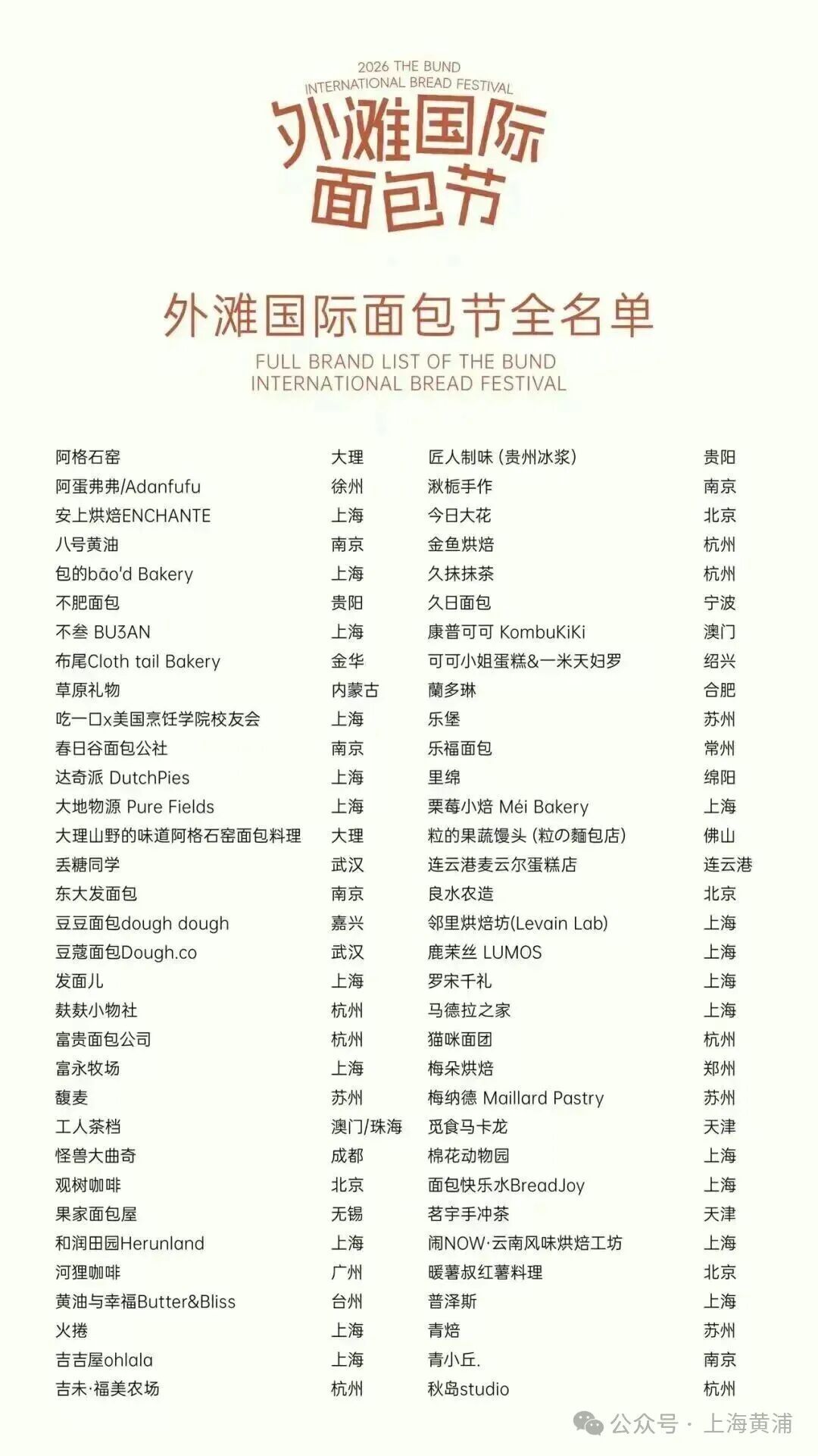 这5家店绝对只是冰山一角,现场还有超200个品牌同台竞技,三分之二都是外地宝藏品牌,近三分之一是首次登陆上海,堪称一部“烘焙世界地图”。阳光、外滩、现烤面包的香气,这个周末,带上你的面包脑袋搭子,赴一场碳水狂欢吧~