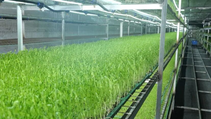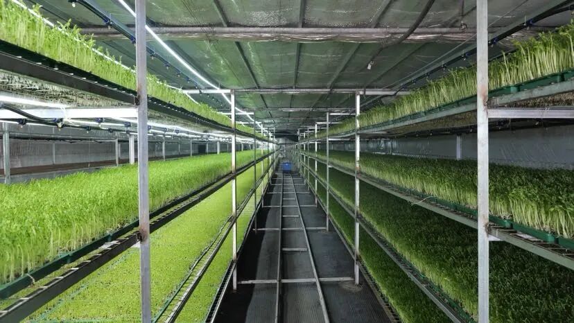 记者在御源农业专业合作社看到,连片菜田绿意涌动。青翠挺拔的青菜水润多汁;香气浓郁的蓬蒿长势喜人;鲜嫩可口的春菜正值最佳赏味期。近10亩甘蓝菜长势格外喜人,深绿的叶片层层包裹,菜球圆润饱满。基地采用科学种植与精细化管理,甘蓝亩产量可达8000斤,产量优势显著。目前这批甘蓝即将成熟,再过一周即可集中采收上市。上海御源农业专业合作社负责人说:“合作社以生产绿叶菜为主,像高秆蓬蒿、矮脚蓬蒿、杭白菜、青菜、春季甘蓝,还有我们的特色产品芽苗菜,都大量上市。”芽苗菜作为基地重点推广的特色项目,凭借生长周期短、复种指数高、营养丰富的优势丰富了春季菜篮子。走进芽苗菜生产车间,多层立体种植架上,豌豆苗等芽苗菜郁郁葱葱、鲜嫩挺拔,细长的茎秆顶着嫩绿的叶片,层层叠叠铺满架面。棚内温度与湿度精准调控,让芽苗菜长势迅猛,清香气息扑面而来。上海御源农业专业合作社负责人表示:“芽苗菜生长周转速度快,大约8天就产出,一个棚的产能相当于100亩土地,产量非常高,对合作社蔬菜产量提升起到了重要作用。”