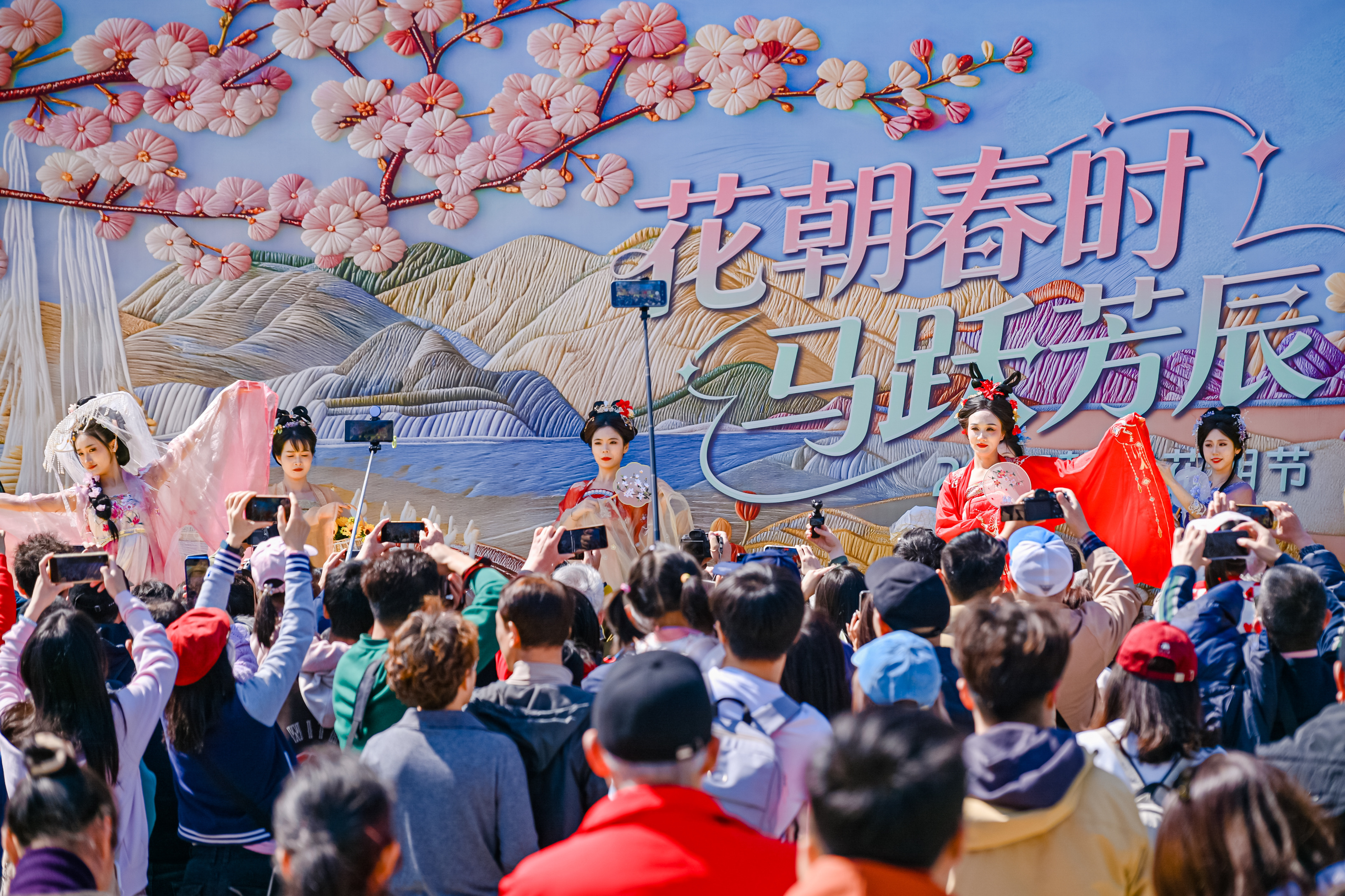 与此同时,民政局特设的浪漫集体婚礼也在花海中见证新人许下誓言,让甜蜜气息弥漫于春日空气之中。