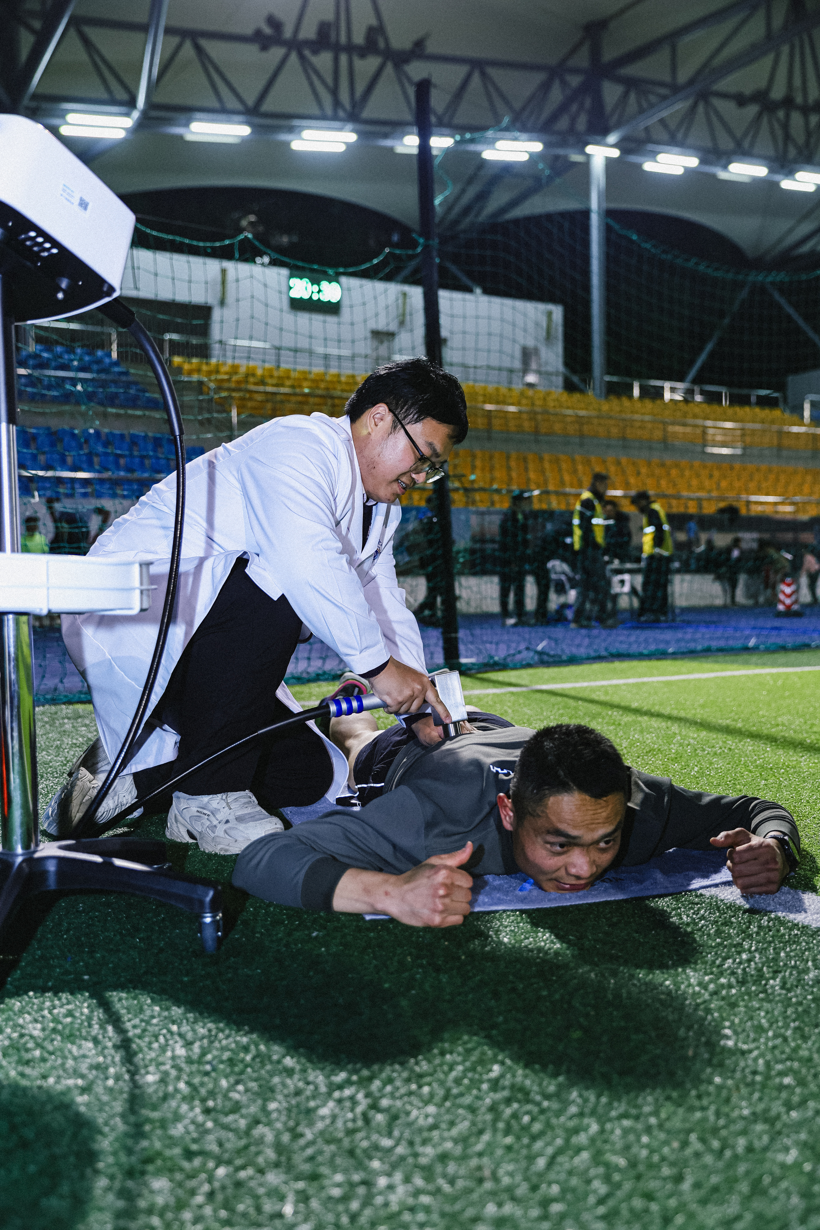 本次赛事由黄浦区体育局、黄浦区体育总会主办,黄浦区体育事业发展指导中心承办,卢湾体育中心协办,并得到卢湾跑团等单位的大力支持。活动筹备期间,瑞金康复医院充分发挥其在心肺康复与中医康复领域的专业优势,精心设置了健康咨询与康复体验两大服务区。康复医学科潘惠娟主任、针灸推拿科张伟主任现场坐诊,为跑者们提供专业的运动康复指导以及颈肩腰腿痛咨询服务。同时,还带领大家开展弹力带热身活动,这一贴心举措不仅吸引了众多参赛跑友踊跃参与,周边不少居民也主动加入其中。在专业指导下,大家认真做好赛前准备,有效降低了运动损伤的风险。