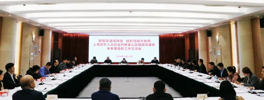 3月12日下午,“聚智攻坚促转型 挂职赋能开新局”——上海党外人士创业创新金山实践锻炼基地半年度挂职工作交流会在金山区会议中心举行。市委统战部常务副部长王霄汉,金山区委副书记金俊峰出席会议并讲话。
