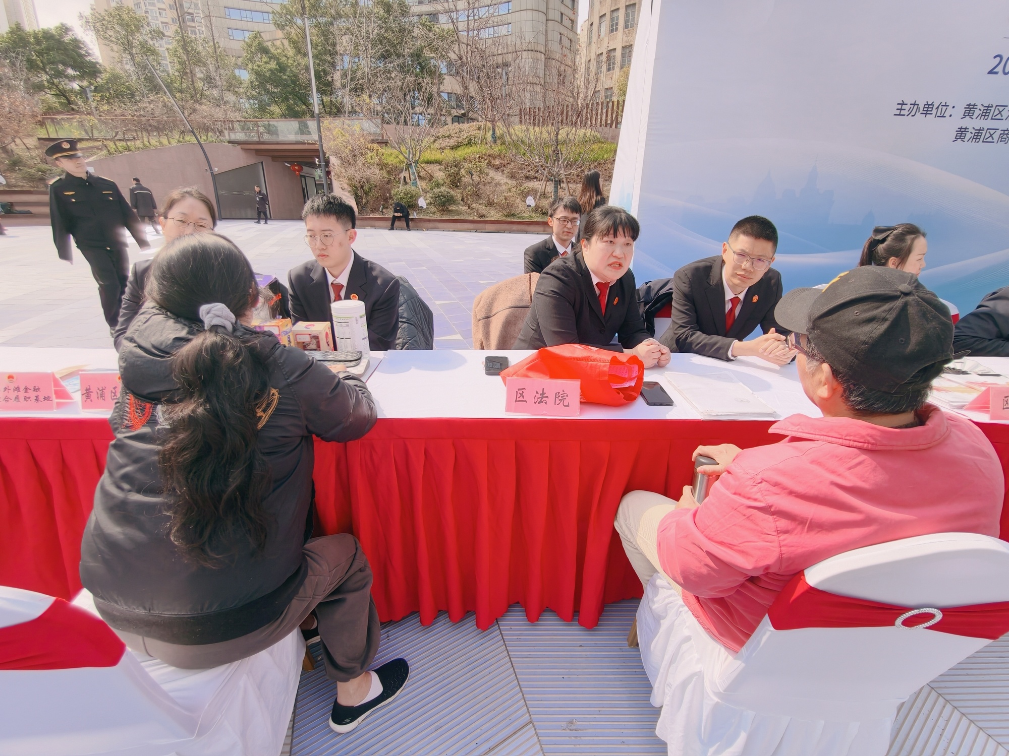 主会场一分为二,政府咨询区里,区市场监管局、区法院、区检察院、区司法局、区商务委、区粮储局等部门一字排开,现场受理投诉、发放各类消费维权指引,有市民拿着刚买的保健品前来咨询,工作人员现场支招,旁边还设有食品快检演示,引来不少人围观。