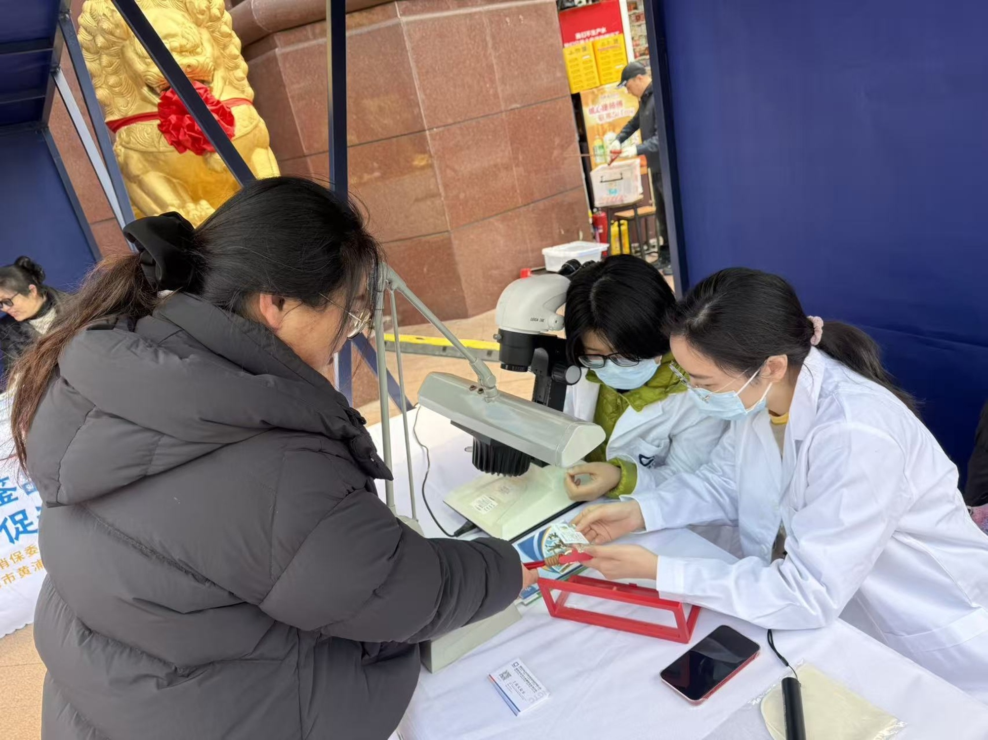 沿着南京路往东,紫锦城门口的黄金珠宝分会场同样人头攒动。依托豫园地区黄金珠宝产业集聚优势,市消保委黄金珠宝办公室将专业检测、权威咨询、便民服务送到了市民“家门口”。
