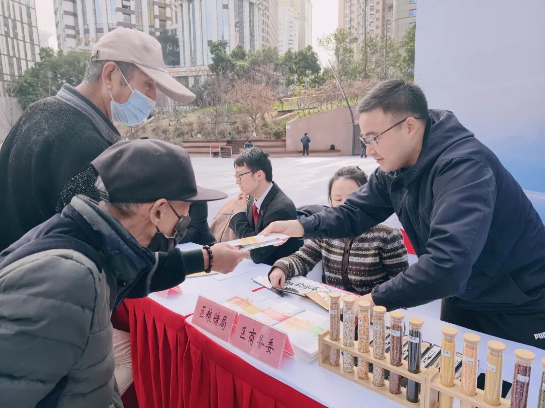主会场一分为二,政府咨询区里,区市场监管局、区法院、区检察院、区司法局、区商务委、区粮储局等部门一字排开,现场受理投诉、发放各类消费维权指引,有市民拿着刚买的保健品前来咨询,工作人员现场支招,旁边还设有食品快检演示,引来不少人围观。