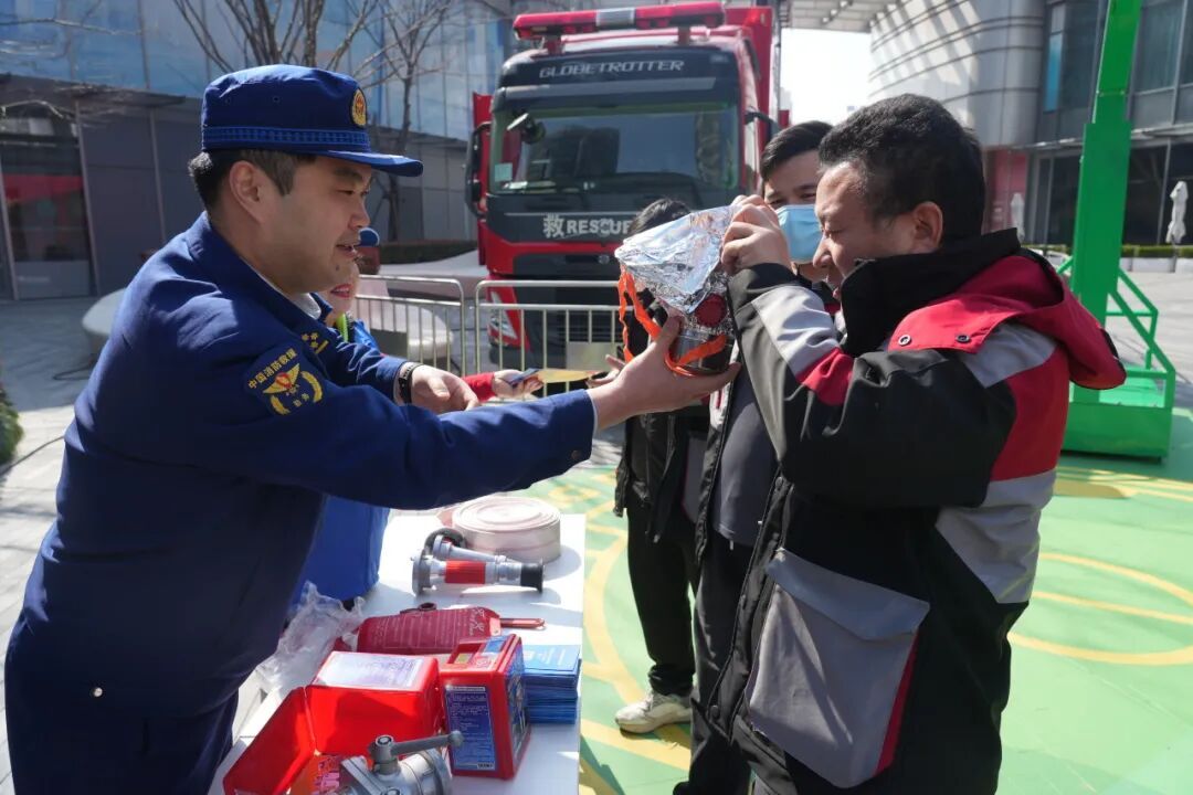 灭火器、防烟面罩、灭火毯、消防水枪水带……平日里藏在角落的消防器材,被一一摆上桌面,成了最直观的“教具”。
