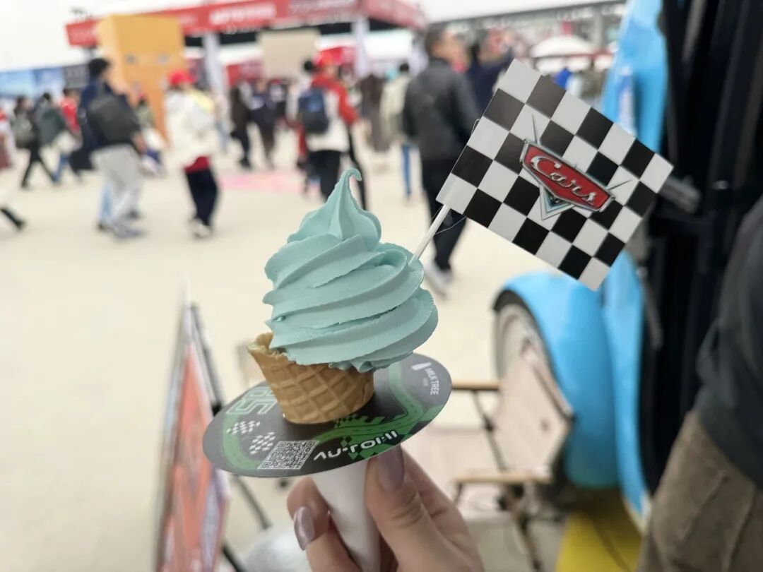 “这个冰淇淋太酷了!和今天现场的氛围特别搭。”市民王女士举起世器科技带来的限定冰激凌拍照,只见冰激凌的底托复刻了上赛场的赛道轮廓,边缘还点缀着黑白格子旗的图案,“把它举起来对着赛道拍一张,感觉整个上赛场都在我手心里。发到朋友圈,朋友们都在问我在哪里买的。”