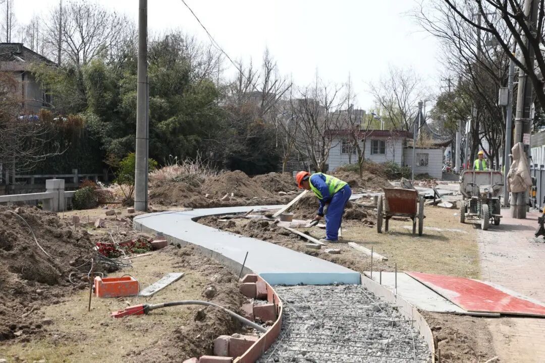 现场,工人们正在紧锣密鼓地施工中,部分区域的原有铺装和设施已开始有序整理。“这片绿地在州桥老街和西大街之间,紧邻西水关城墙遗址和已建成的‘悦心’口袋公园,位置关键,但功能性和文化辨识度有待加强。”嘉定镇街道社区管理办副主任张晟表示,“西水关敬贤园的建设,并非简单的绿化修补,而是有明确文化导向和功能补充的系统性提升。”
