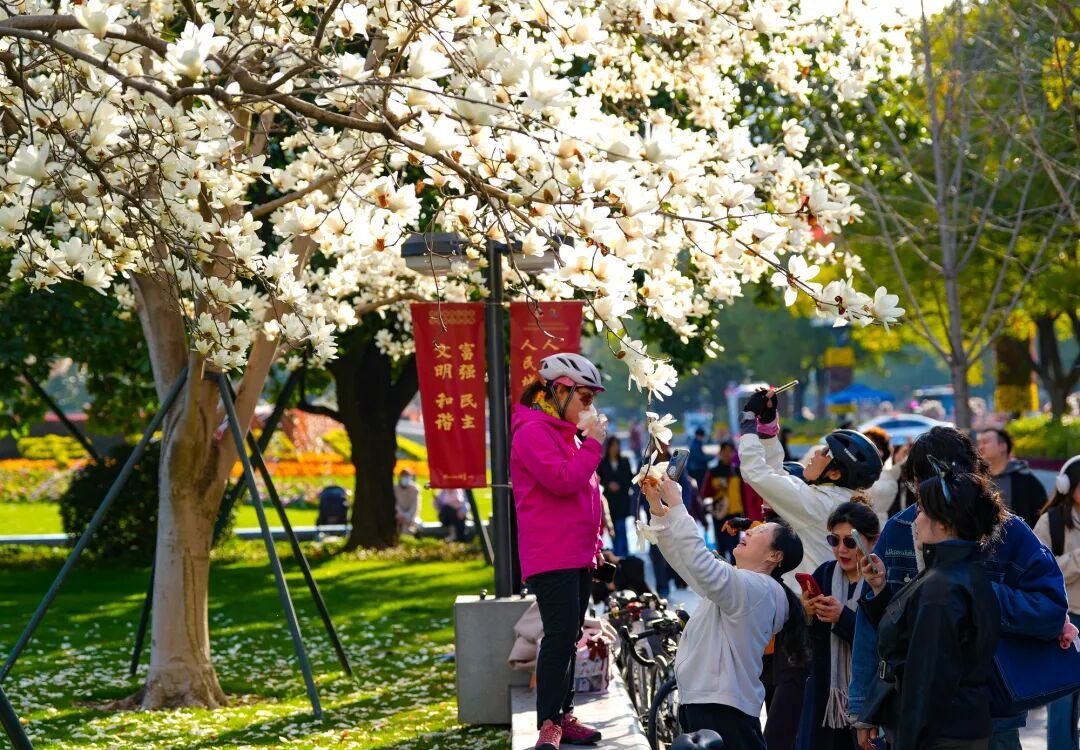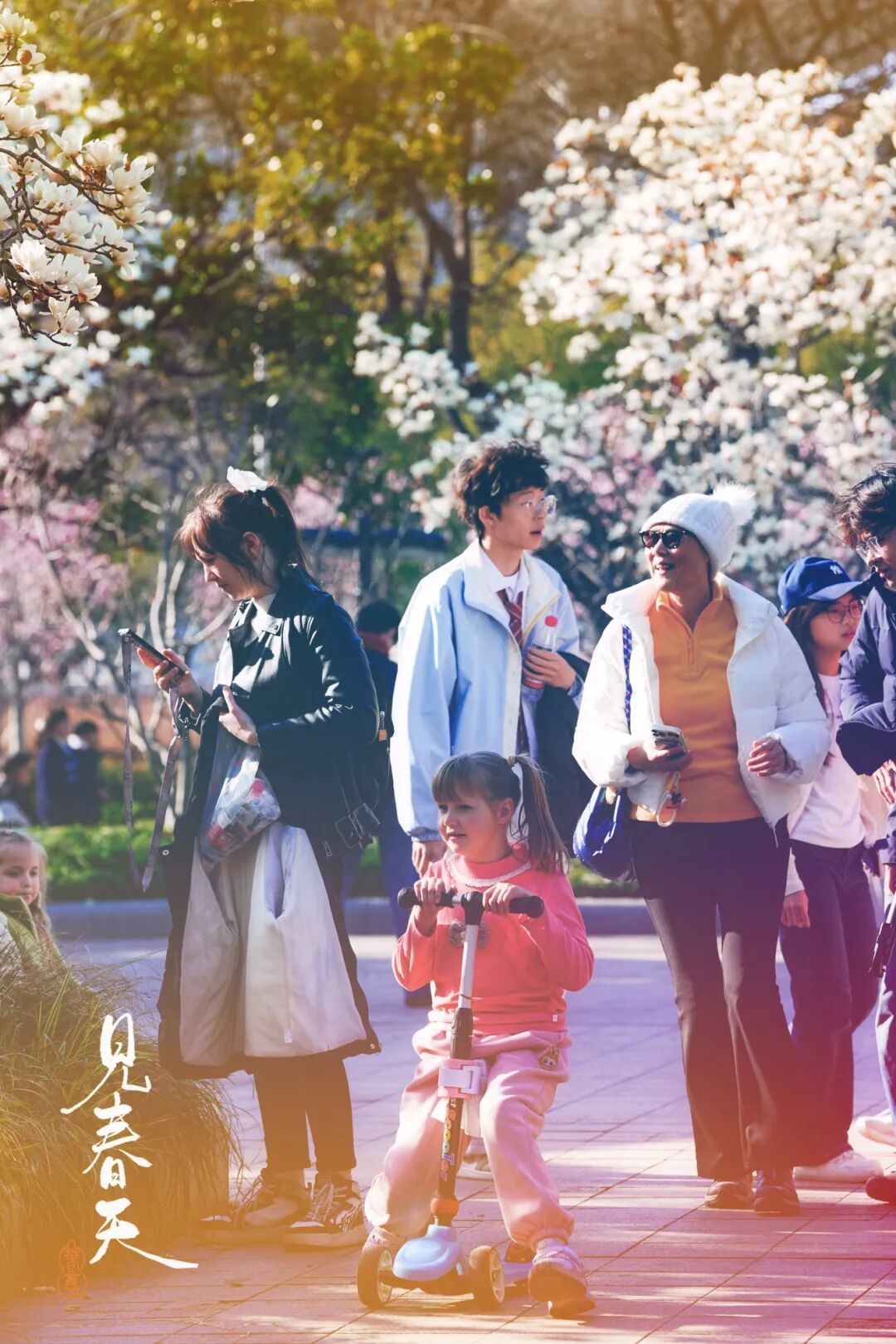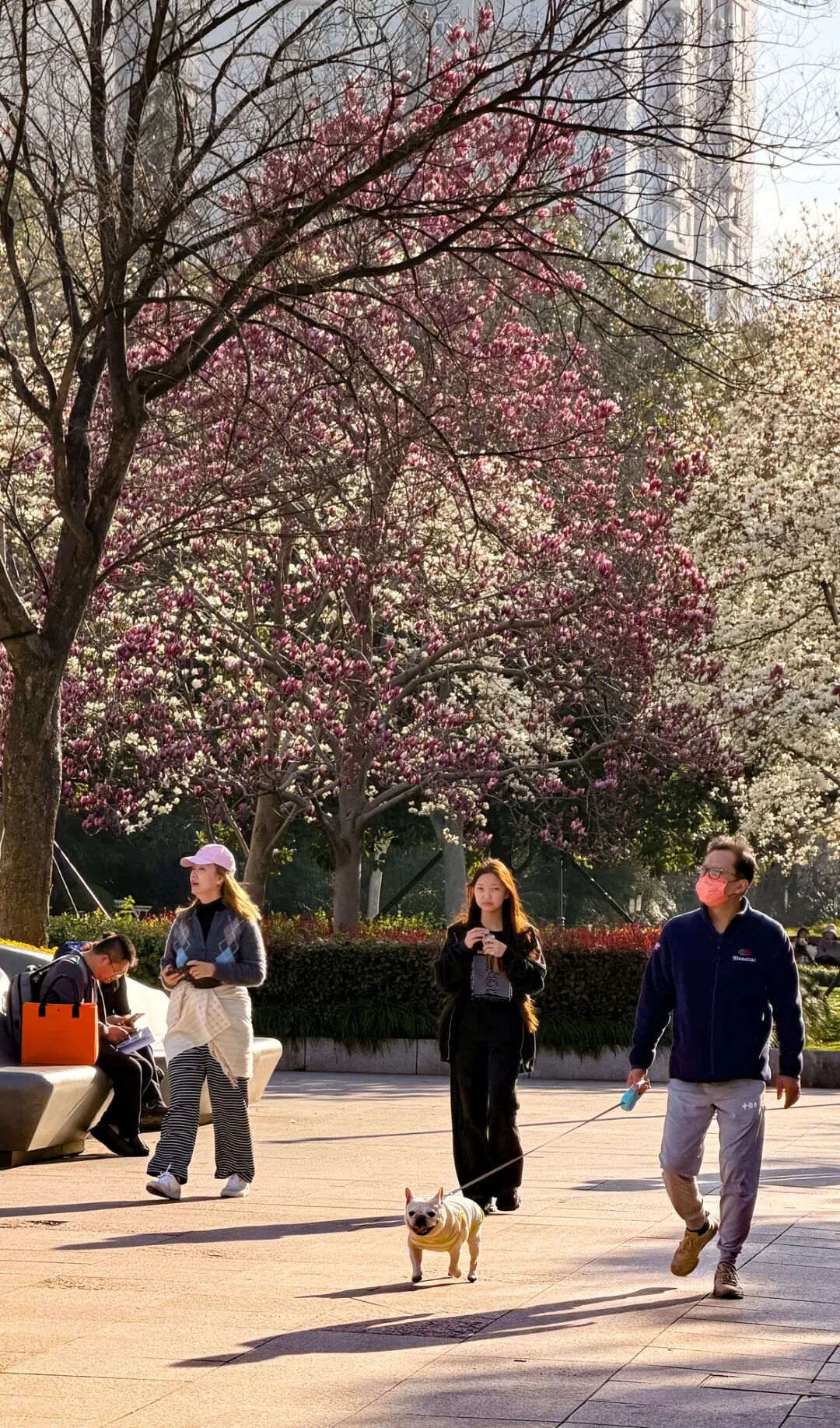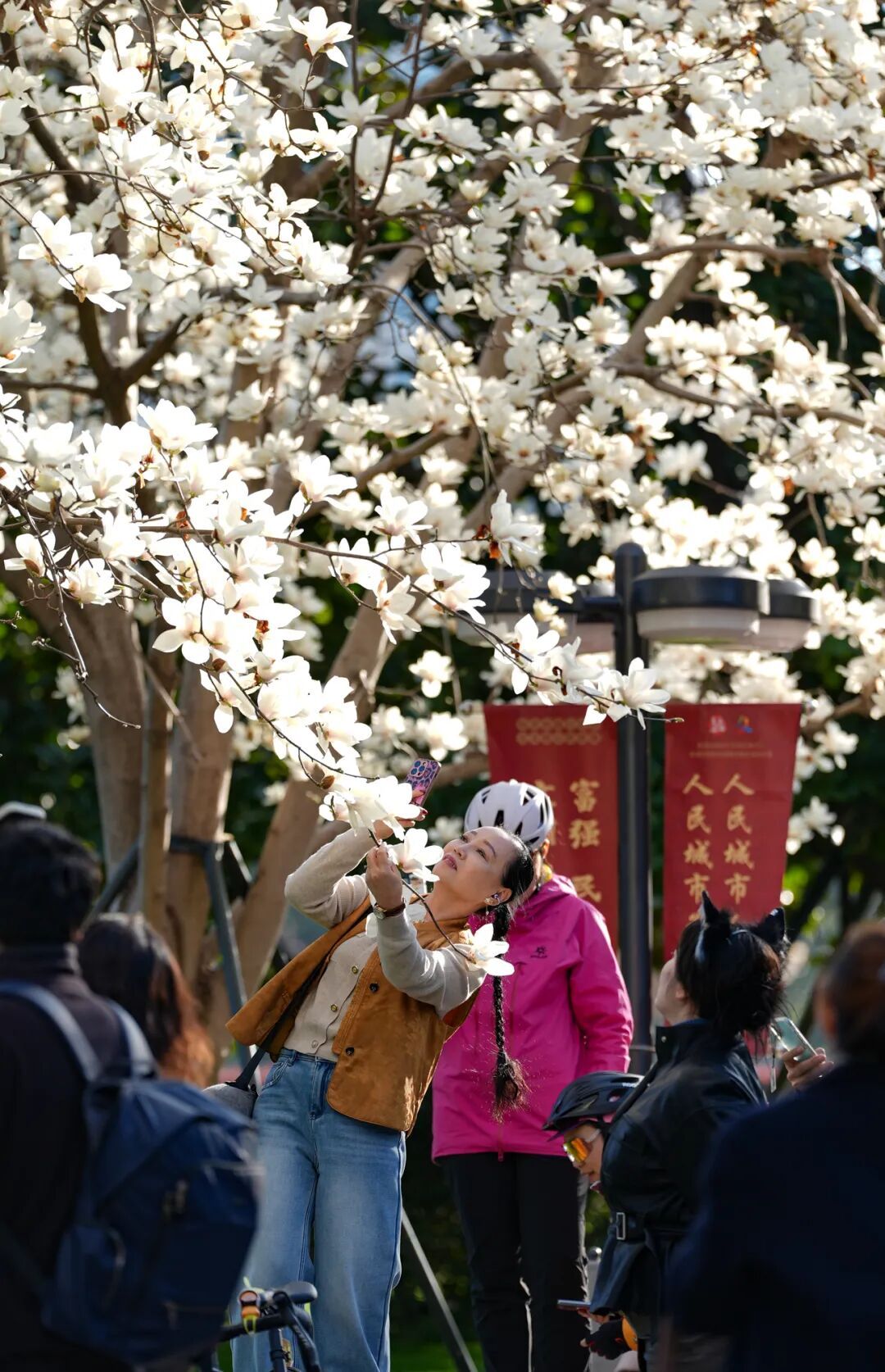 白玉兰作为市花,以昂扬姿态代言着城市精神;紫玉兰则以温婉气质,为闹市添一抹柔情。不同肤色的面孔在花影中流动,镜头里记录的是上海最动人的春日故事——最美的季节,就是让每一朵花都自在绽放,让每一个人都在花下找到属于自己的风景。