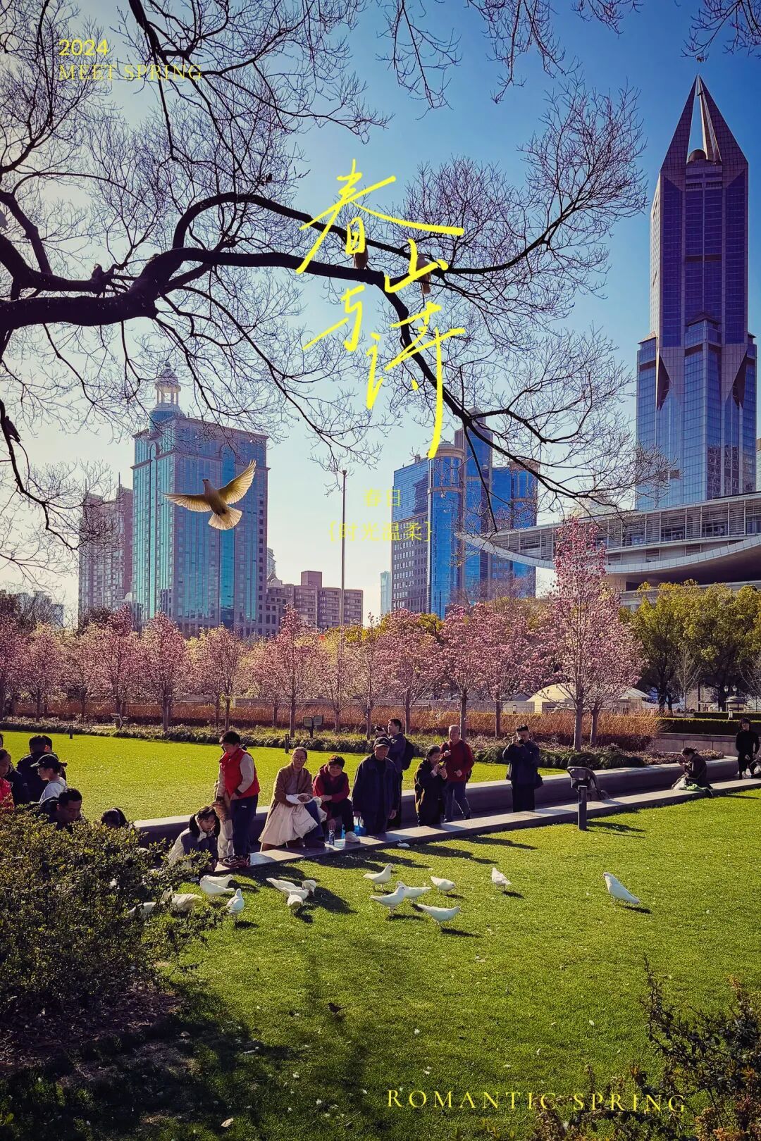 从地铁1号口到上海博物馆,三百米的步行动线是最美的天然舞台。广场西南侧的鸽子树下,孩子们追着暖阳奔跑,喂鸽子的画面格外治愈。镜头拉近,白玉兰在眼前绽放,紫玉兰在远处相衬,白紫相间,层次分明。鸽群不时从花丛间掠过,与玉兰同框,定格下春日里最温暖的瞬间。