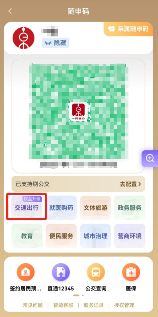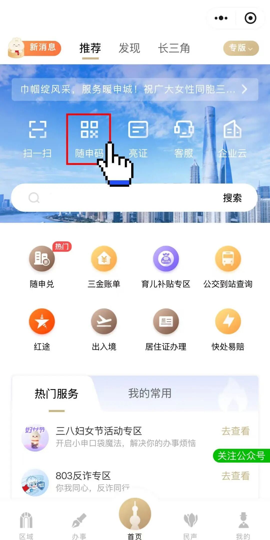 打开“随申办市民云”(APP/微信小程序/支付宝小程序),首页点击“随申码”,开通交通场景配置,完成签约,即可使用。全市地铁、公交、轮渡“一码通行”。