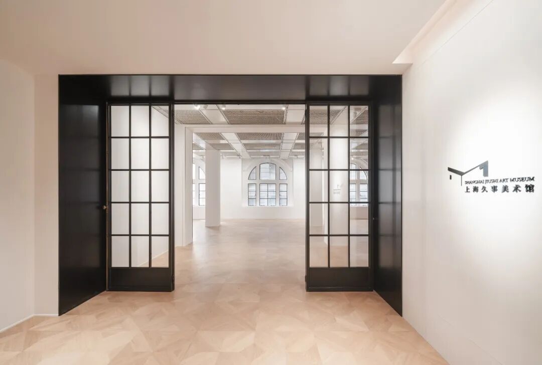 2层的美术馆入口处采用通透的玻璃门窗,让空间更显灵动通透。步入场馆,一扇镶嵌于黑色门框的老钢窗静立眼前,其形制与建筑立面的老钢窗遥相呼应,将外滩独有的建筑基因自然延伸至室内空间,为每一位观众打造一场富有仪式感的艺术入场序曲。