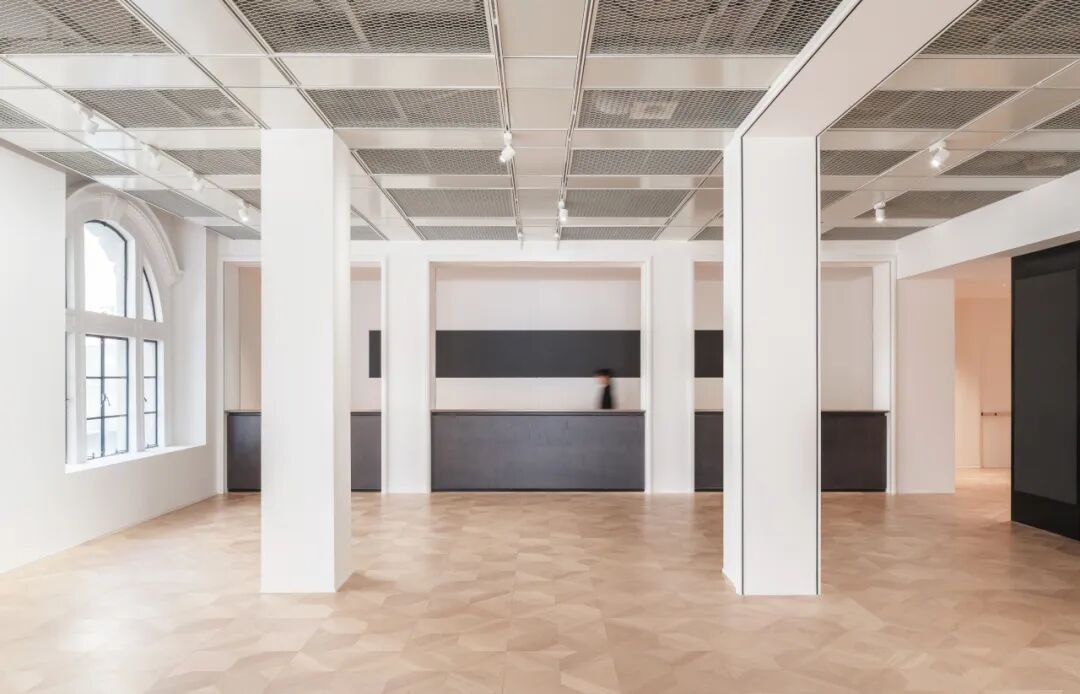地面是延续建筑记忆的重要载体,经过翻阅尘封的历史档案,邀请设计团队为新馆铺设了外滩同期历史建筑的经典拼花实木地板。温润的木质触感,搭配细腻的自然光泽,让观众步入展厅的那一刻,便能触摸到百年建筑的温度,在历史的氛围中,沉浸式感受艺术的魅力。