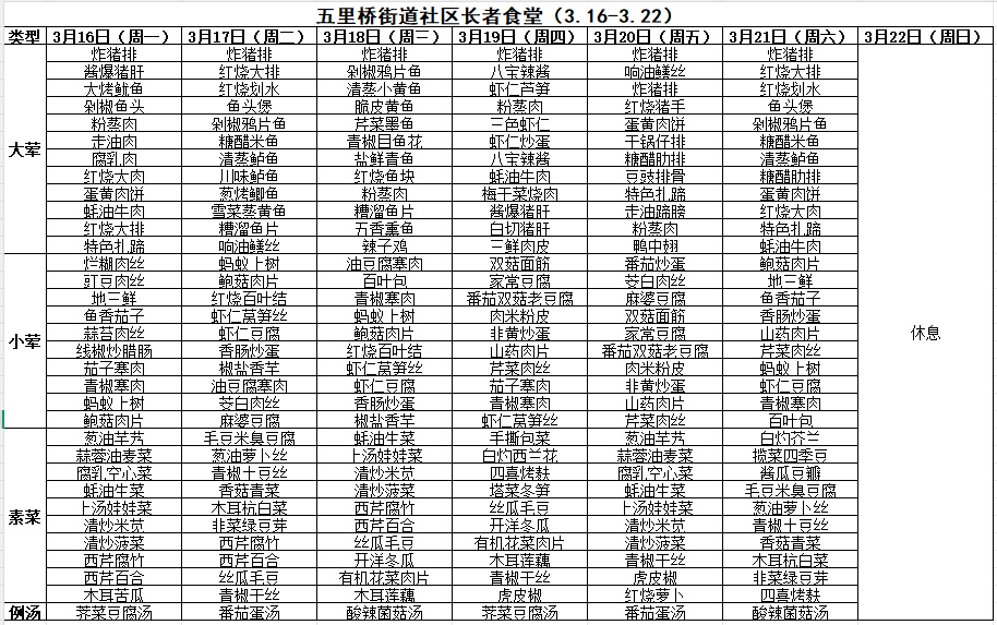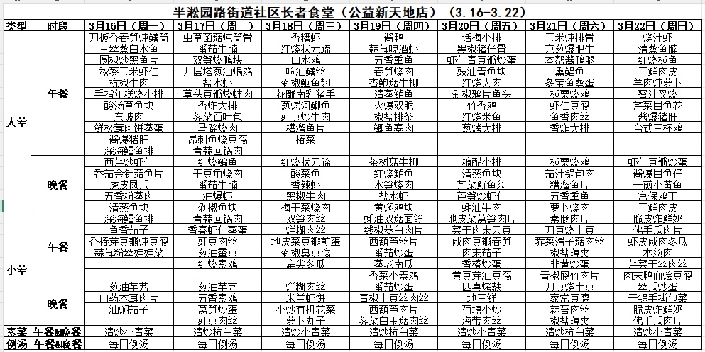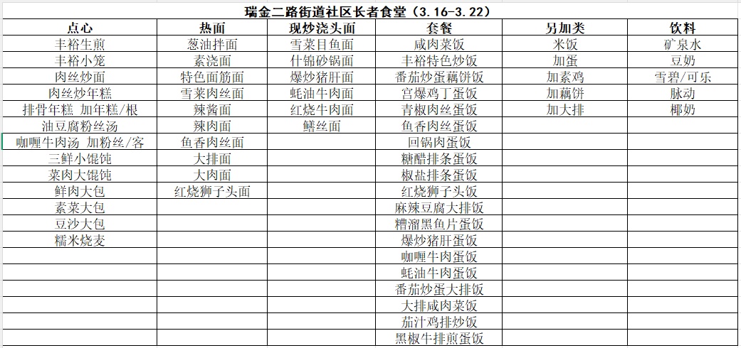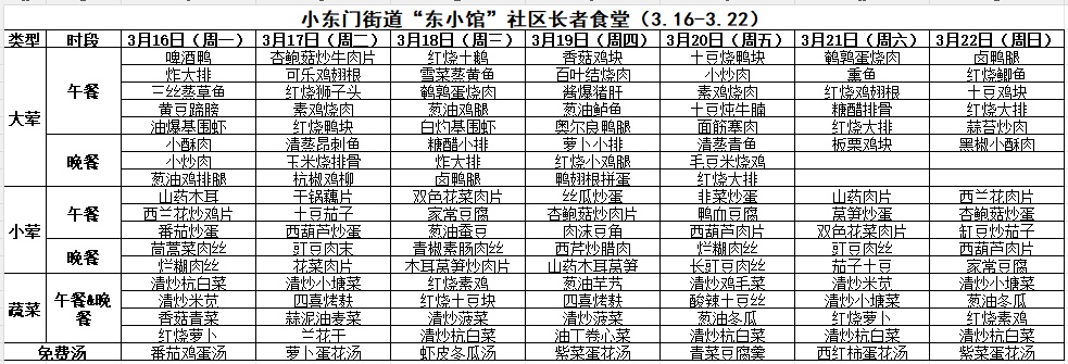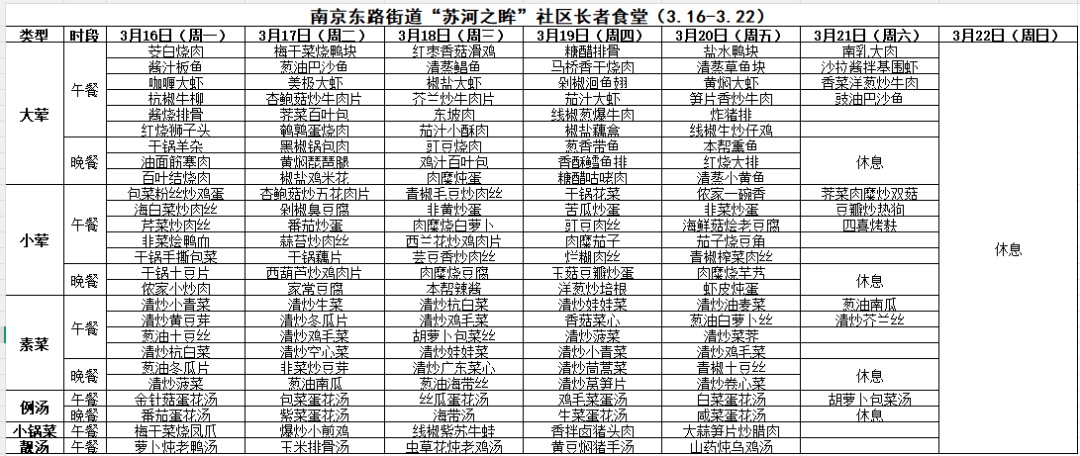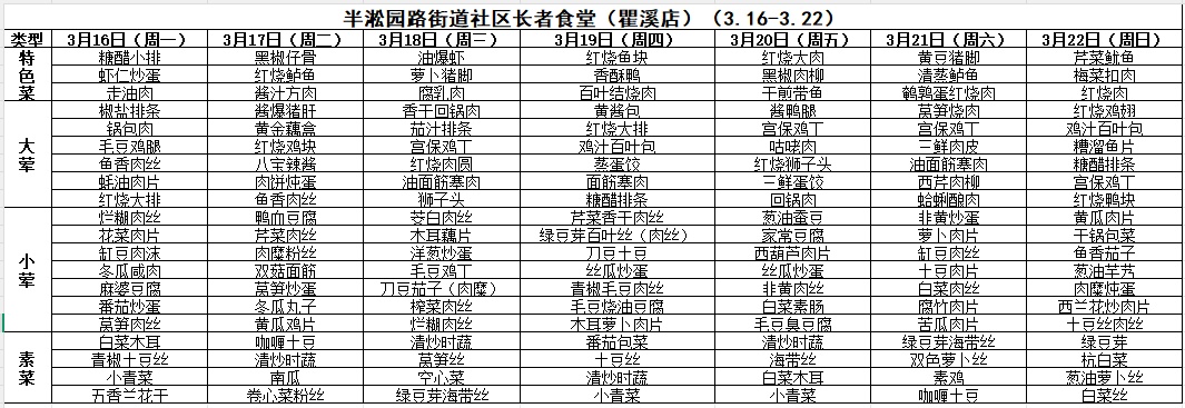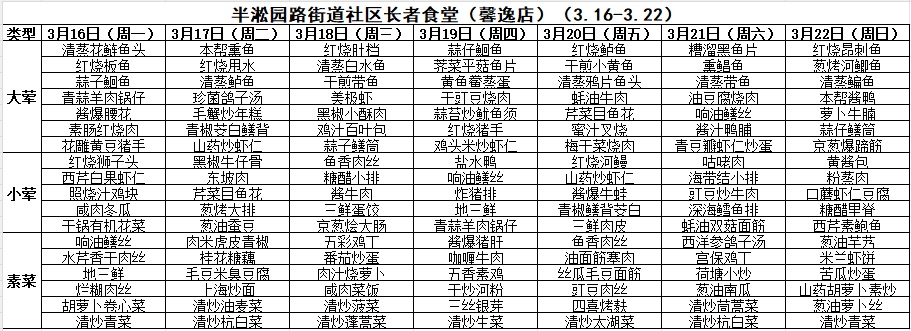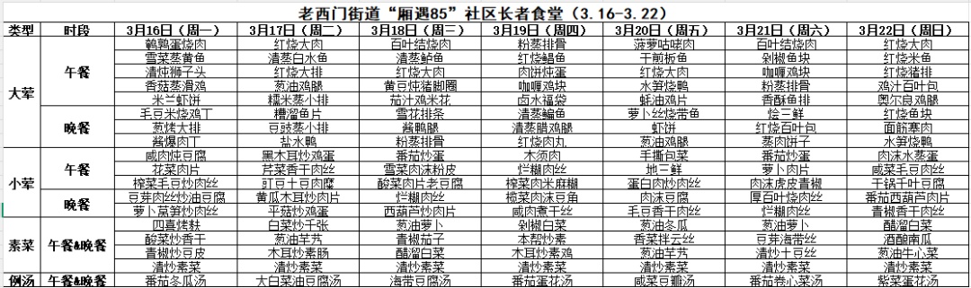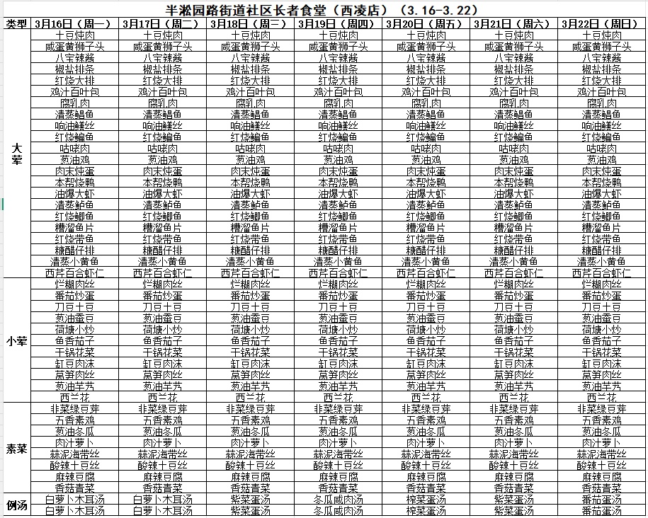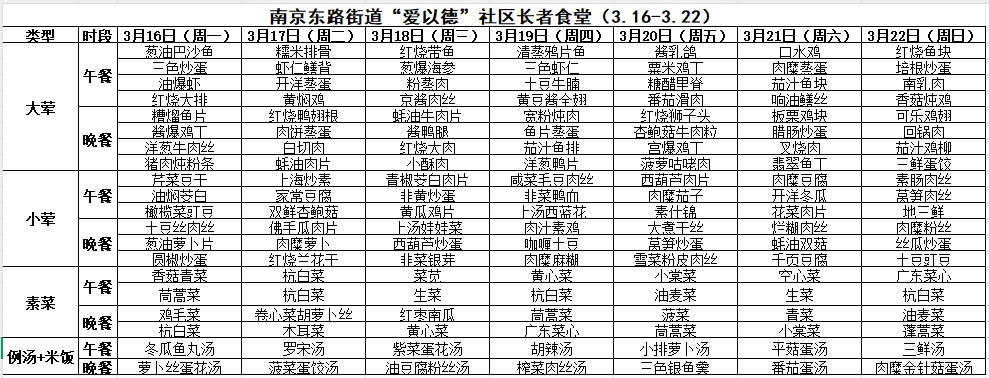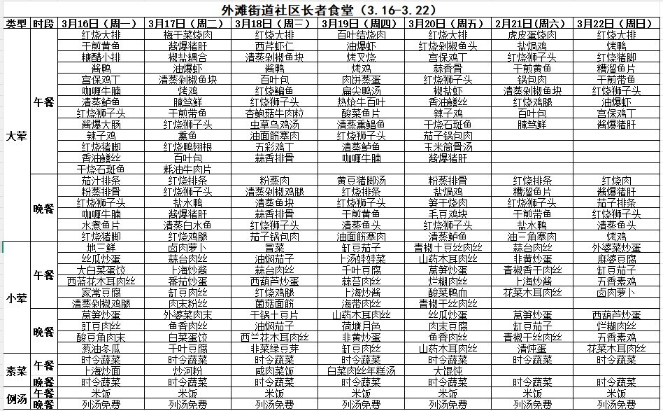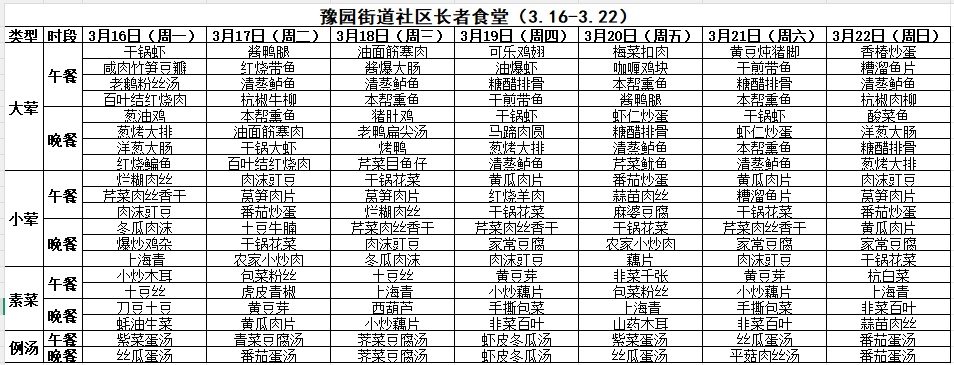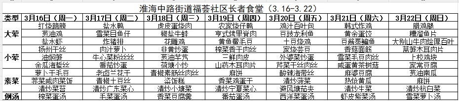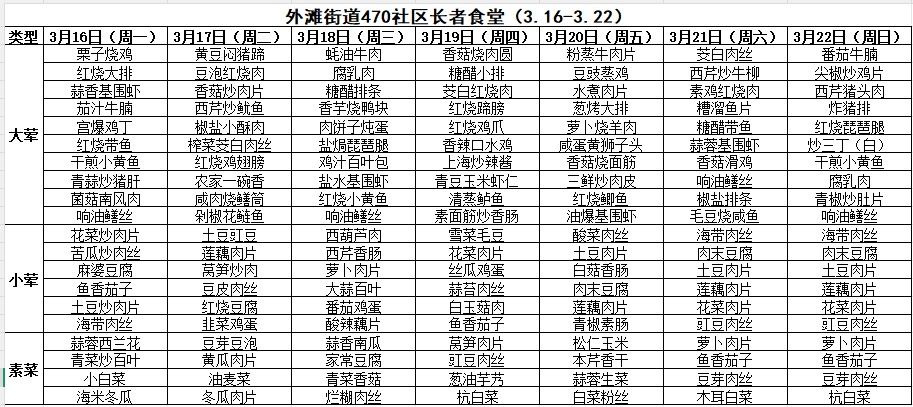 黄浦区社区长者食堂一周菜单(3.16~3.22)
