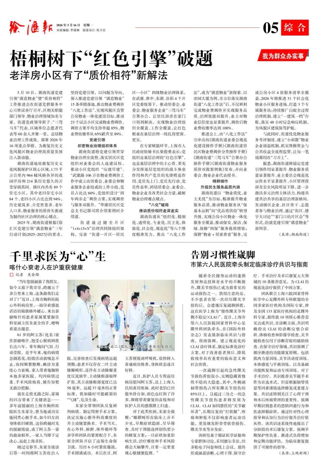 在衡复风貌区核心的湖南街道,1.73平方公里内964幢老洋房交织,老旧小区占比94%。党建引领,创建“1+4+15+N”治理架构,把“三驾马车”(居委会、业委会、物业)拧成一股绳,让诉求在家门口解决;用“八化工作法”推动“质价相符”,让23个试点小区调价支持率超85%,收缴率跃升至89%。如今,从“保基本”到“优品质”,老房子有了新奔头,“物业质优、业主无忧”的社区新图景正徐徐展开。