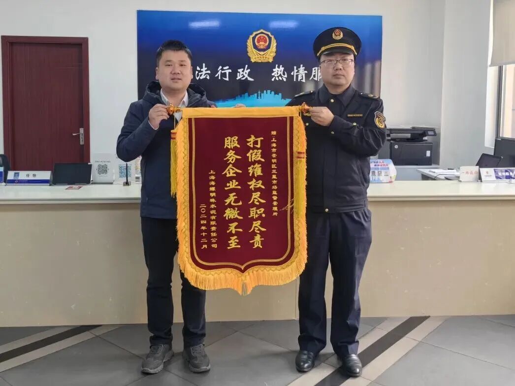 近年来,崇明区市场监管局三星所接连收获三面意义非凡的锦旗。一面来自国际娱乐巨头华纳兄弟,一面来自国内建材龙头海螺水泥,还有一面,竟来自被查处侵权的辖区企业。红绒金字的背后,是一场场没有硝烟的“商标保卫战”,更是一张张体现执法智慧、温度与力度的高分答卷。