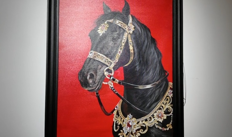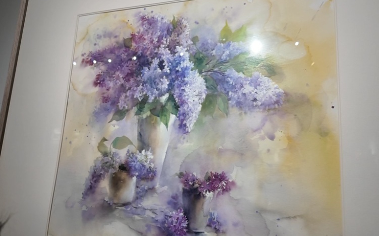 步入展厅,各类艺术作品错落陈列,或大胆浓烈,或素雅温润,吸引观众驻足细品。青年画家创作的《黑骥踏鸿途》色彩鲜亮,以细碎短促的笔触层层铺色,既精准塑造出马匹肌肉与鬃毛的饱满质感,又保留了笔触的呼吸感。水彩画《丁香花落午风微》则素雅细腻,花瓣通透、飘落灵动,温柔情愫跃然纸上。