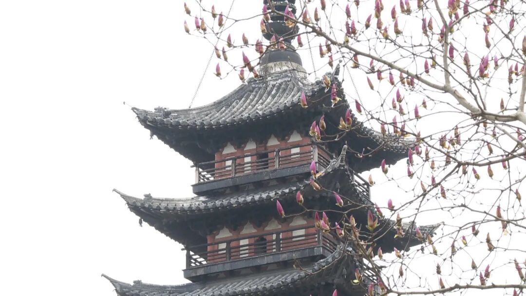太阳暂别,松江天色阴郁,微风带凉。记者在方塔园内看到,几株白玉兰已进入盛花期尾声,部分花瓣悄然飘落;一旁的二乔玉兰则含苞待放,准备接过春日赏花的“接力棒”。