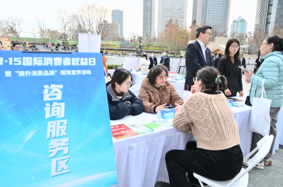3月14日—15日,由市市场监管局和区市场监管局、区消保委联合举办的3·15国际消费者权益日大型现场宣传活动,在丰盛里·静安寺广场举行。活动紧扣中消协“提升消费品质”年主题,以“好产品、好选择、好保障”为倡议,为市民打造集政策发布、服务体验、维权科普于一体的消费宣传盛宴。