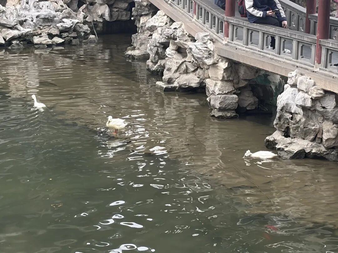 不过,你可千万别以为这就是普通的小白鸭哦,这些小鸭子大有来头。这是一种极具文化意蕴的珍稀古禽,名叫“凤头白鸭”,如今已成为上海豫园园林中一道灵动的风景线。