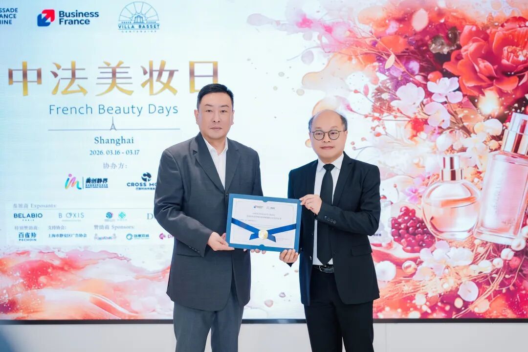 杨世旺现场向“美创静界”授予《法国商务投资署美妆领域战略合作伙伴证书》,以表彰其在推动中法美妆合作中的深度参与和卓越贡献。