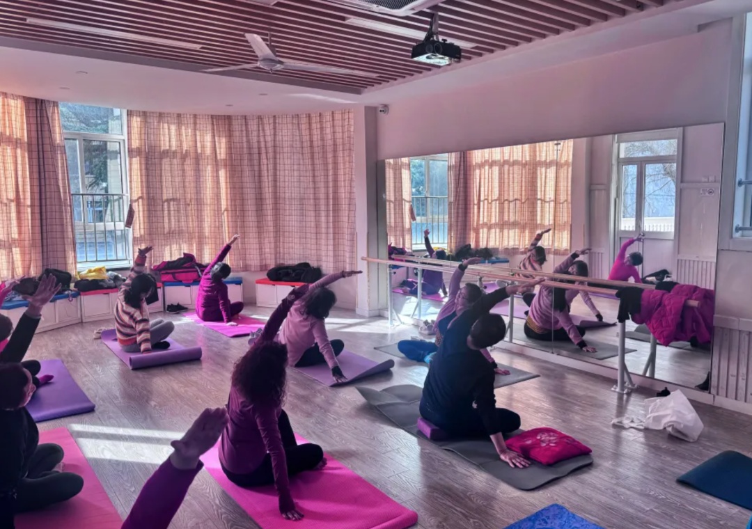 舞蹈教室的精彩轮番上演。民族舞课上,老师执粉扇示范柔婉身段,学员们跟着节拍抬手、转身,一步一挪尽是东方韵味。换上瑜伽课,这里变得静谧安然,轻柔的背景音乐里,老师细细拆解呼吸和体式,从肩颈放松到基础拉伸,带着大家慢慢舒展身体。那些曾经喊着腰腿不适的叔叔阿姨,在循序渐进的练习中舒缓了疲惫。在教室后方的“互助角”,大家还两两结对互帮互学,在一呼一吸间收获身心的平和。