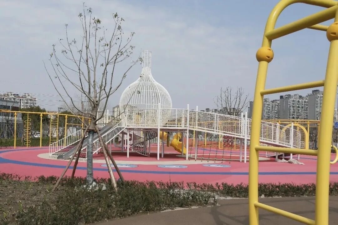 位于新成路街道梧桐园的口袋公园内,色彩明快的儿童游乐区铺设了安全地垫,滑梯、攀爬等设施一应俱全;老年健身区配备了多样化健身器材,方便居民日常锻炼。沿河而建的步道蜿蜒展开,既有居民散步慢跑,也有人驻足休憩,享受片刻闲暇。