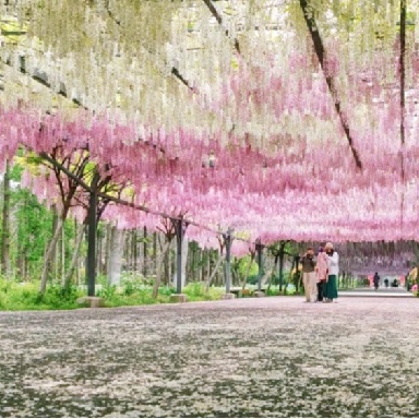 从紫藤长廊出发,穿过花好月圆,