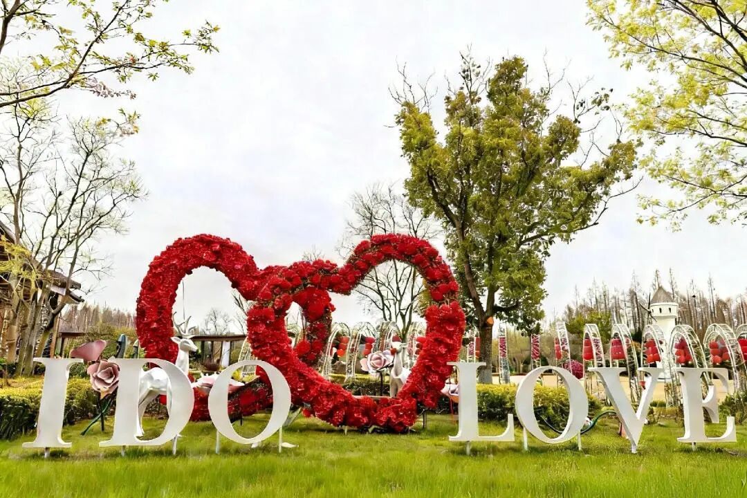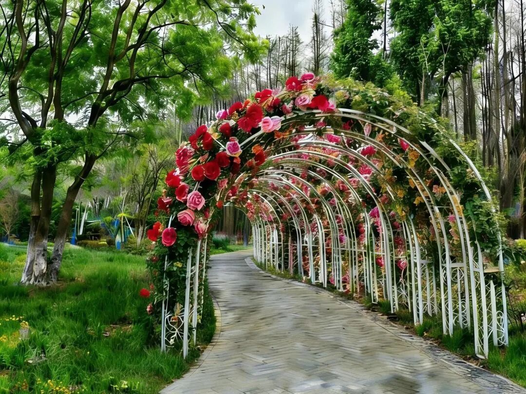 巨型花束簇倾倒在地,月季拱门静立相迎。
