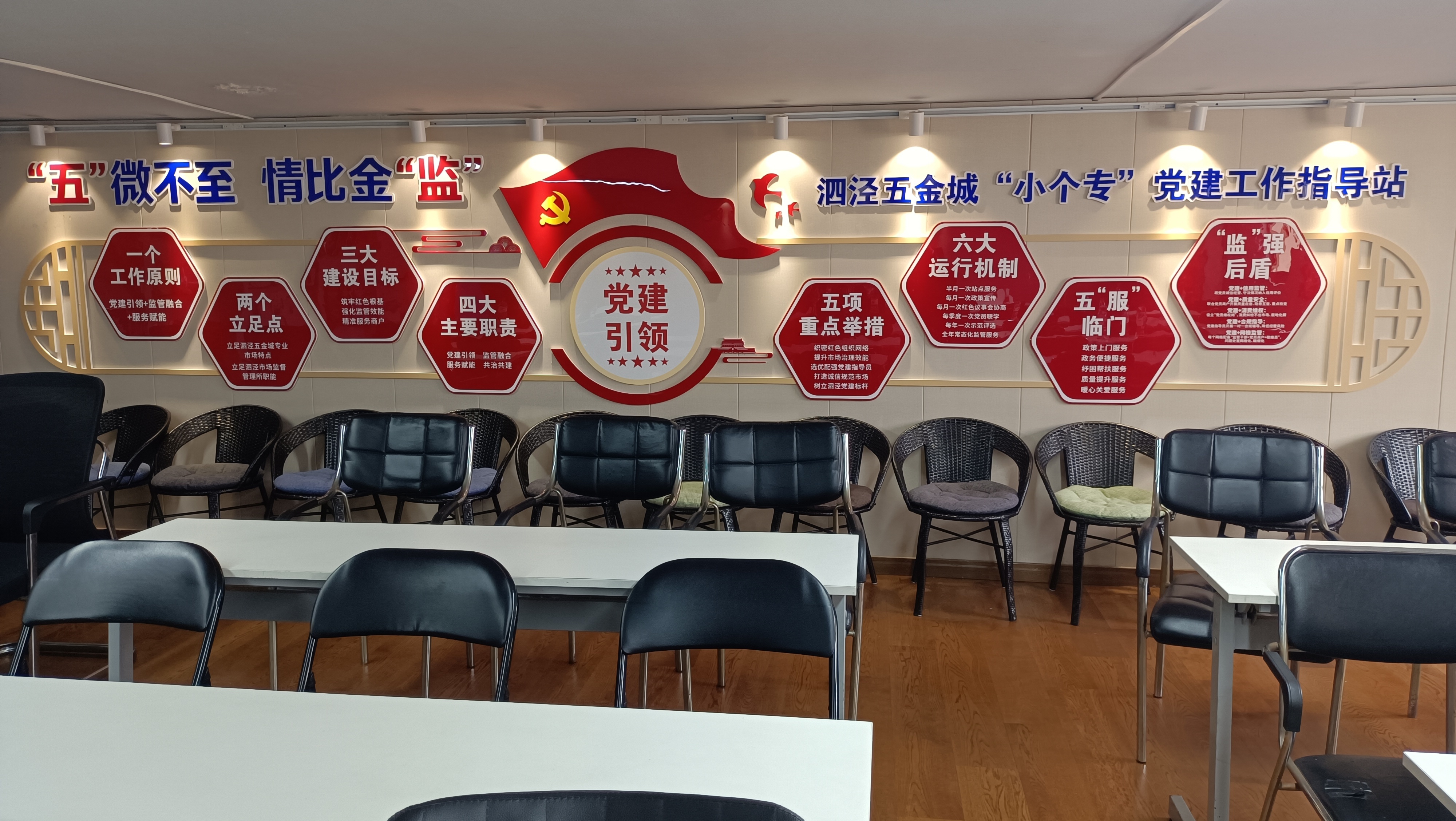 小微企业、个体工商户、专业市场是稳就业、保民生、促发展的重要力量。泗泾五金城作为区域重要专业市场,商户数量多、党员较为分散、发展需求多元。在“3·15”国际消费者权益日当天成立“小个专”党建工作指导站,旨在构建“阵地前移市场、服务沉到一线、监管落在实处”的红色生态圈,推动党建工作与市场监管、商户经营同频共振、互促共进。