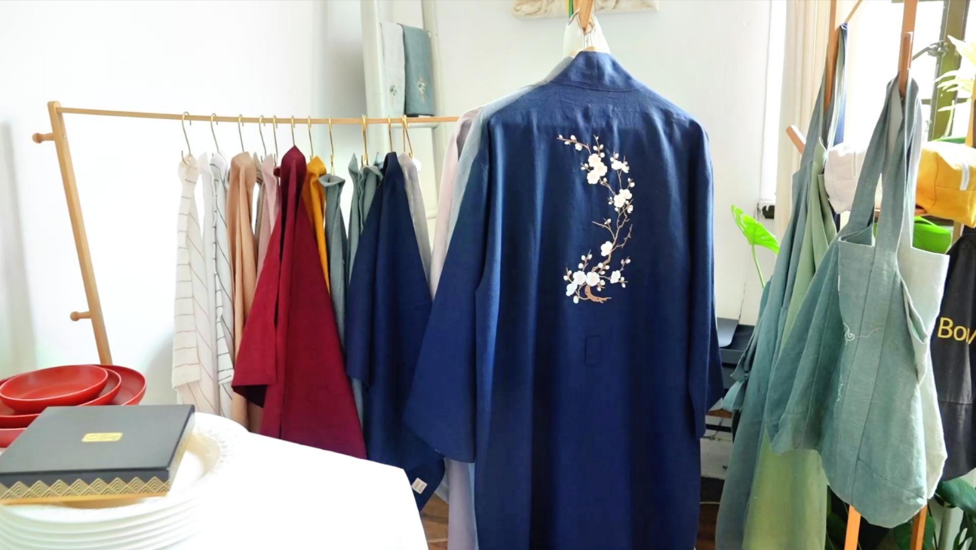 而选择亚麻材质则是基于我的价值观,对我来说,亚麻是一种很高贵的面料,耐用且冬暖夏凉。种植亚麻所需的水量只有棉花的十分之一,而且亚麻不易遭虫害,所以种植过程中不需要使用化学药剂。这对皮肤更友好,也更环保,完全契合我追求可持续性和耐用性的品牌理念。