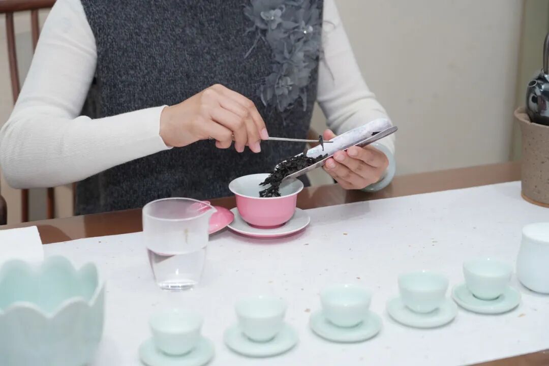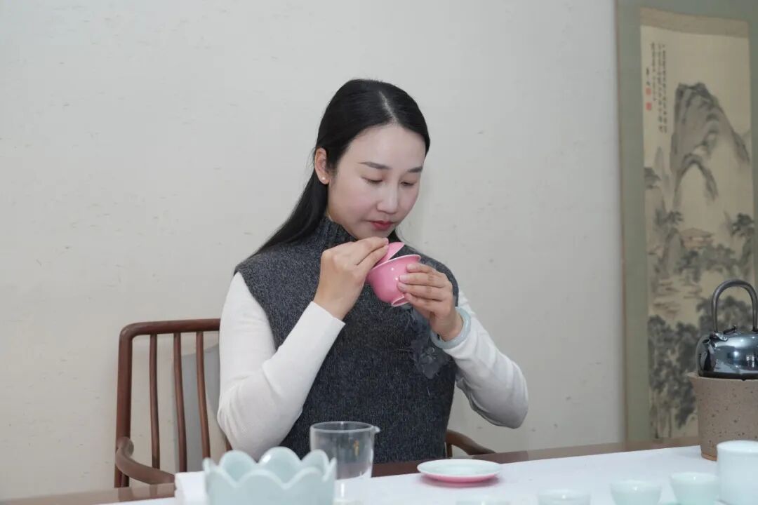 “江南行茶十式”脉络清晰、技法精微,整套流程涵盖主客行礼、备茶、温器、投茶摇香闻香、温杯、润茶、泡茶、分茶、请茶、品茶十个步骤,每一式都讲究心手合一、韵律自然,尽显茶道之美。