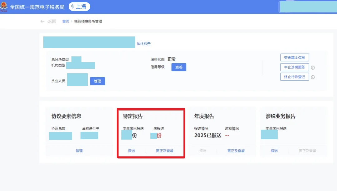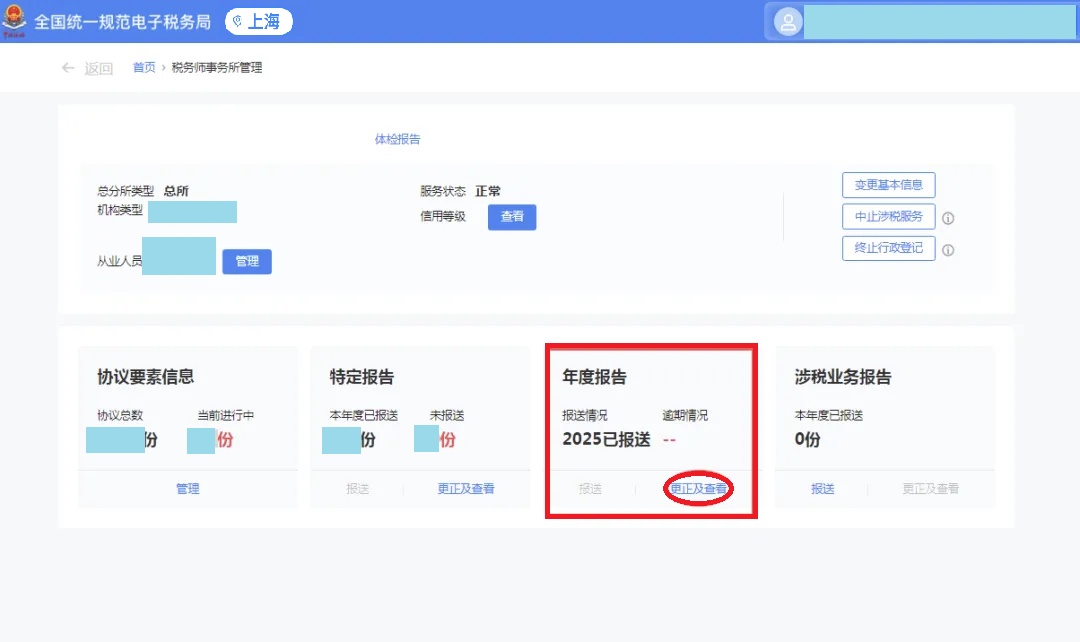 3月31日前,通过全国统一规范电子税务局查看上一年度涉税专业服务年度报告,对于系统自动报送的年报数据进行核对并更正。