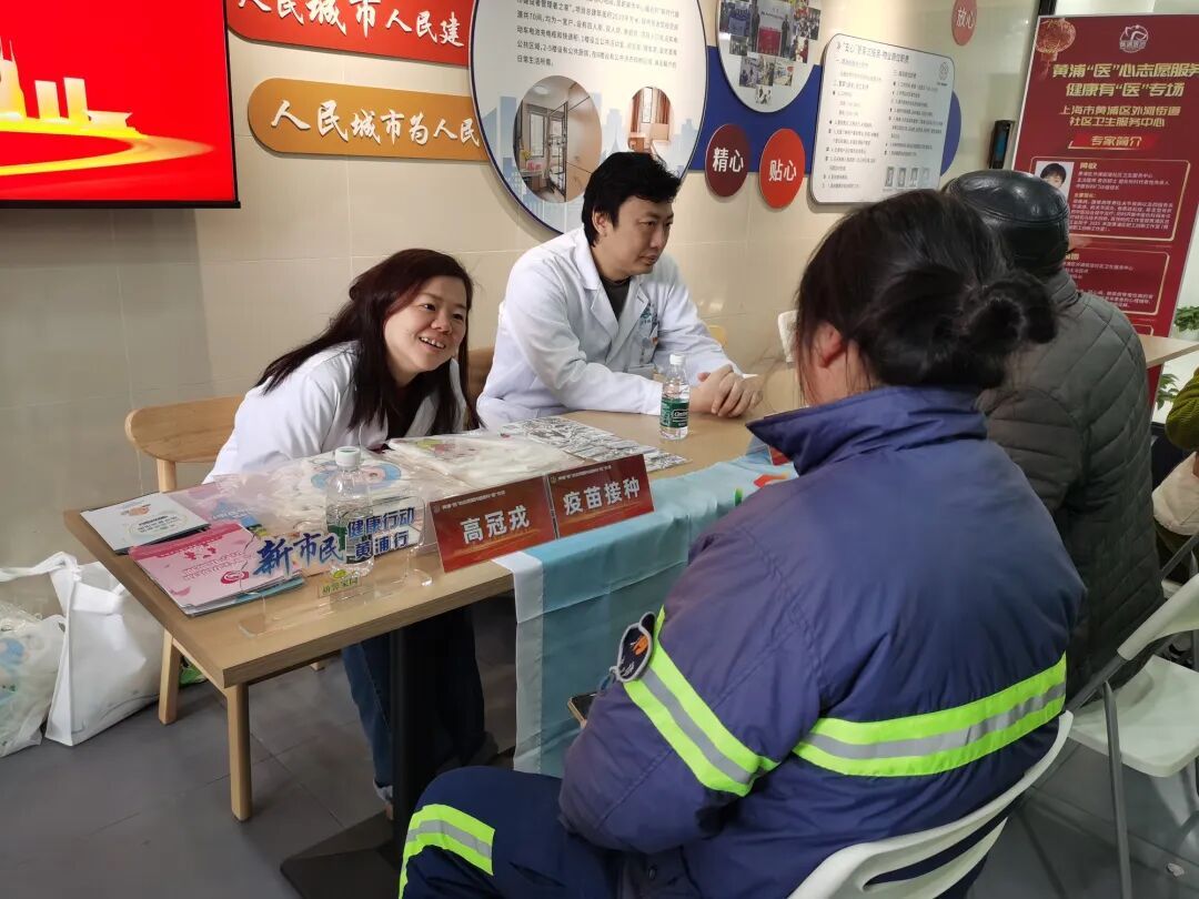当天上午,由黄浦区卫生健康党工委、黄浦区卫生健康委员会牵头,金外滩集团下属黄浦保租房公司、外滩街道社区卫生服务中心等单位共同承办的黄浦“医”心志愿服务——健康有“医”专场活动正在进行。