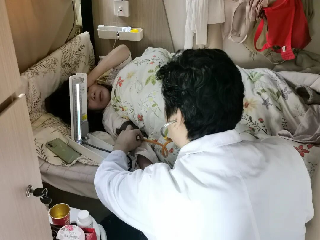 接到求助后,黄浦保租房公司的工作人员立刻行动,一边轻声安抚焦急的租户,缓解其紧张情绪,一边迅速联动现场义诊的医护人员,协调上门就诊事宜。争分夺秒间,来自外滩街道社区卫生服务中心的全科医生拎起急救箱,快步跟随管家赶往租户房间,一场“义诊变急诊”的暖心救助就此展开。