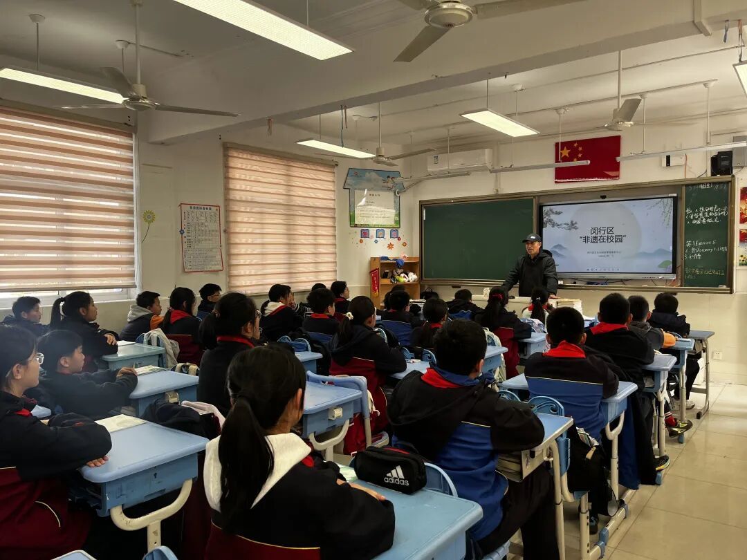 2026年3月,春季开学第一周。闵行区的校园里,两堂截然不同的“非遗课”正在进行:在马桥强恕学校的课堂上,六年级新生们正襟危坐,目光紧随着国家级非遗代表性传承人赵雪林手中的彩狮,聆听一段跨越百年的“舞狮”传奇;而在金汇高级中学的国学教室内,高一学生正在“上海工匠”袁金祥的指引下探寻古旧木器中榫卯结构的奥秘。