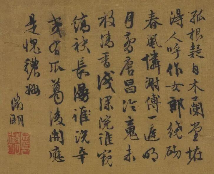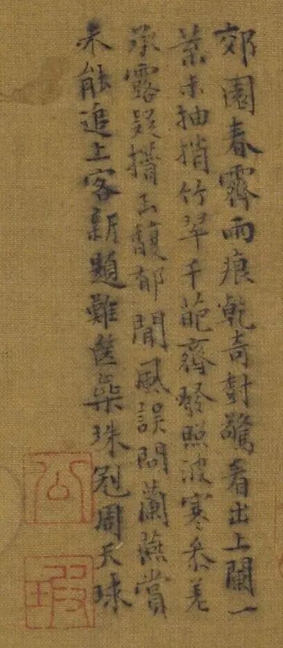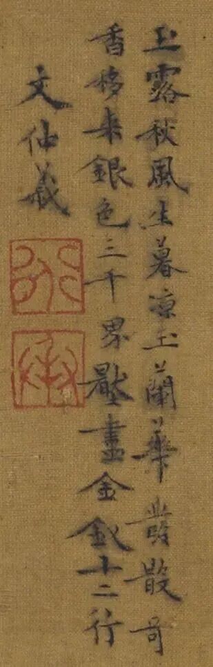 在这幅画上,文徴明作自题诗一首。这种用书法在绘画作品上题诗的方式,称为“题画诗”,是欣赏画作的重要部分。诗画互补,蕴含着深厚的思想内容,更有助于观者理解作者意图与画作内涵。